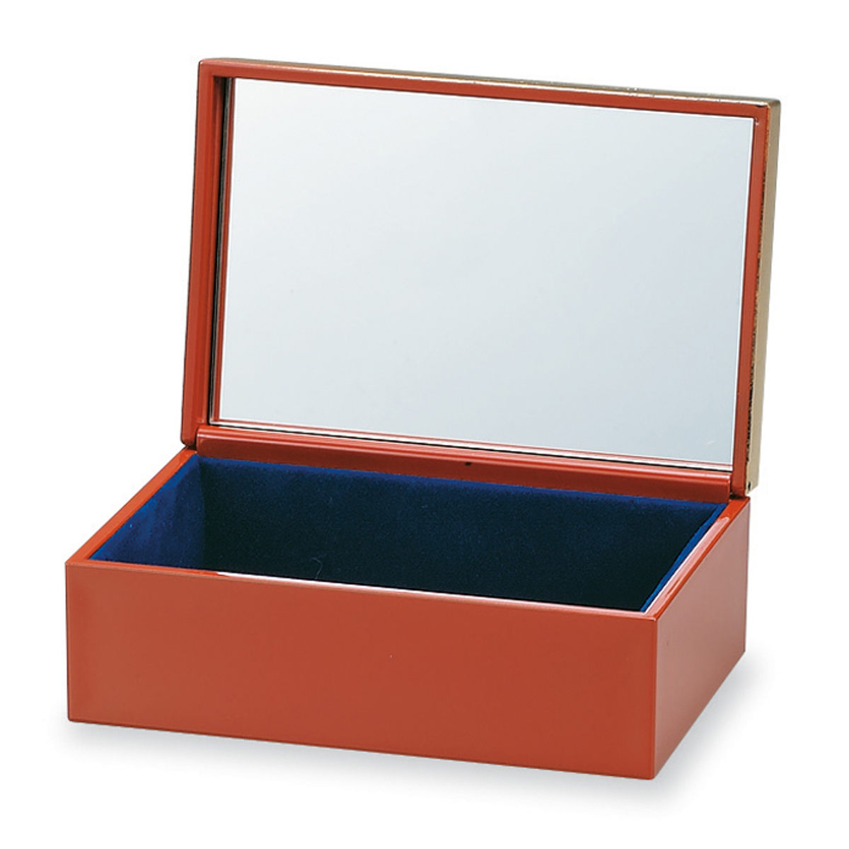 内部はアクセサリー整理がしやすい1段仕様で、指輪・ピアス・ネックレスなどデイリーアイテムがすっきり収まるコンパクトサイズです。蓋裏には鏡を備え、身支度時のコーディネートにも便利です。