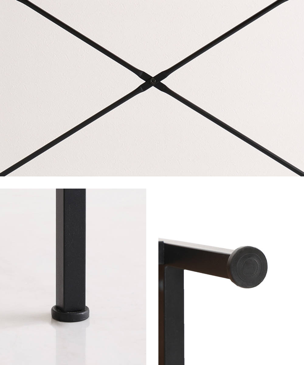 横揺れを防ぐクロスバーと、床の傾きやガタつきを軽減するアジャスター付きで、安全性があり安心してお使いいただけます。