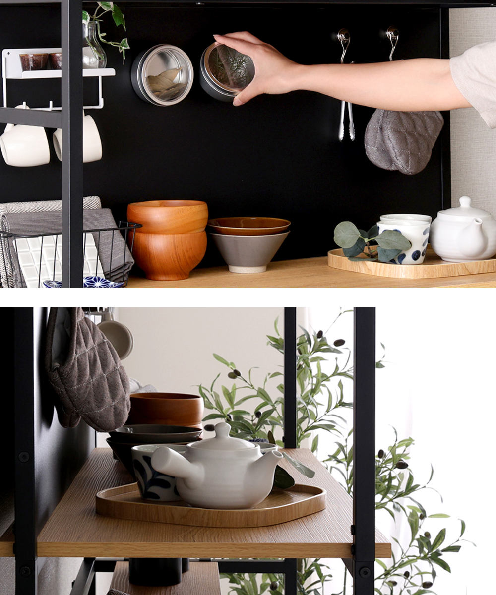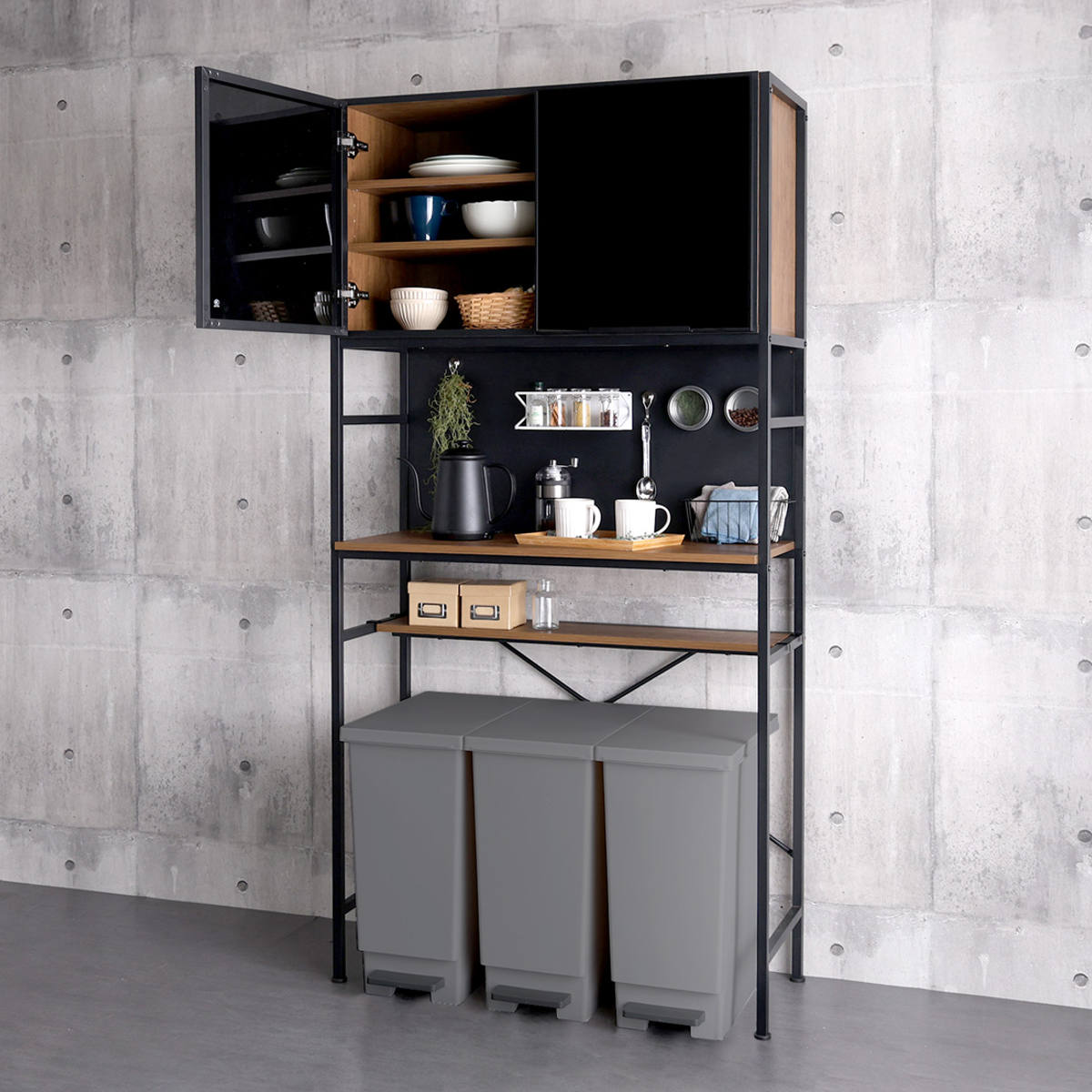 生活感の出やすいものを、すっきり収めて空間が整うゴミ箱上ラックです。45Lのゴミ箱が3つ置けるゴミ箱上ラックに食器や家電をまとめて収納できます。収納力と機能性、そして意匠の美しさをひとつに。使いやすさと佇まいにより、キッチンに整った空気をもたらします。