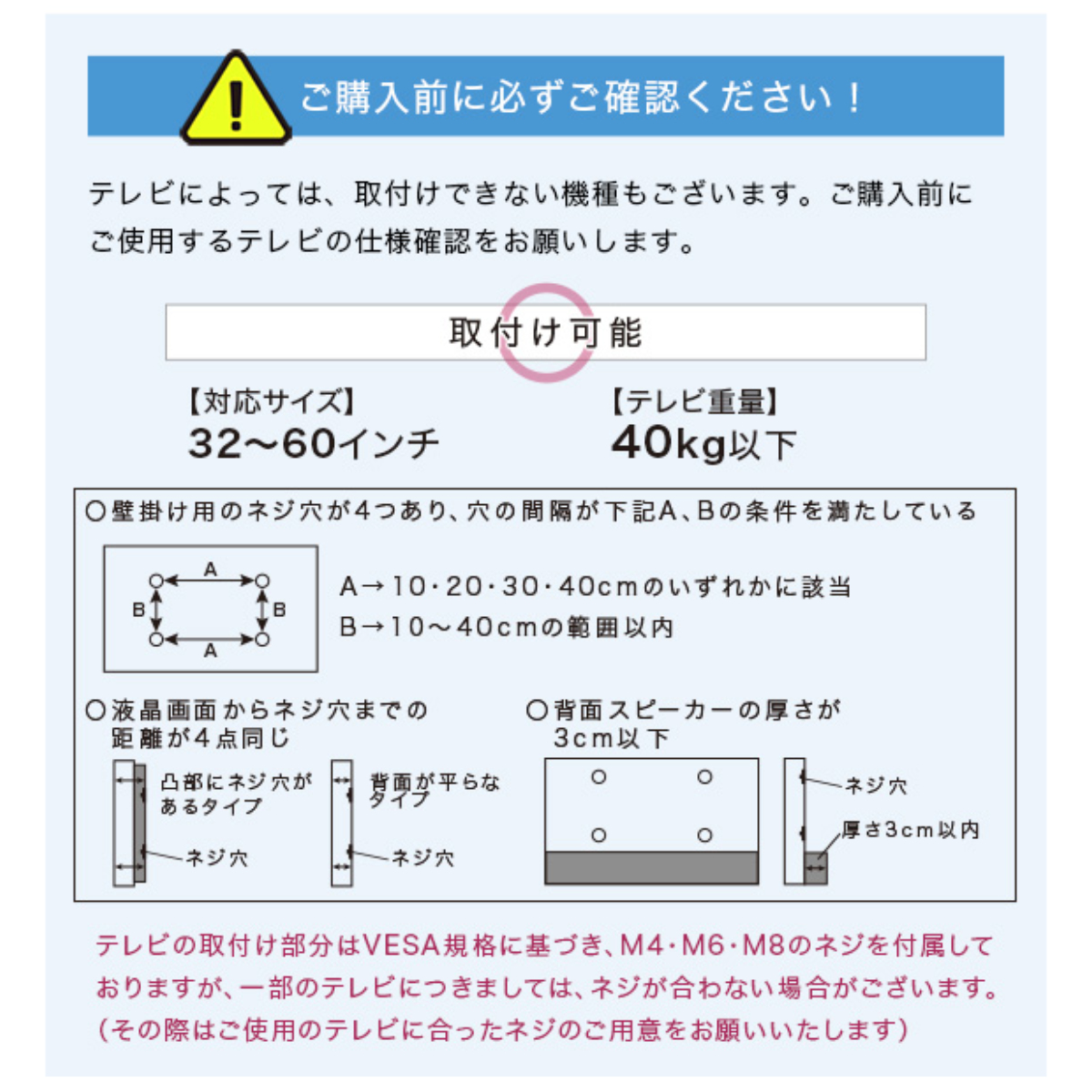| 備考 | 組み立て時間 【テレビスタンド】約60分 【サウンドバー】約20分 |