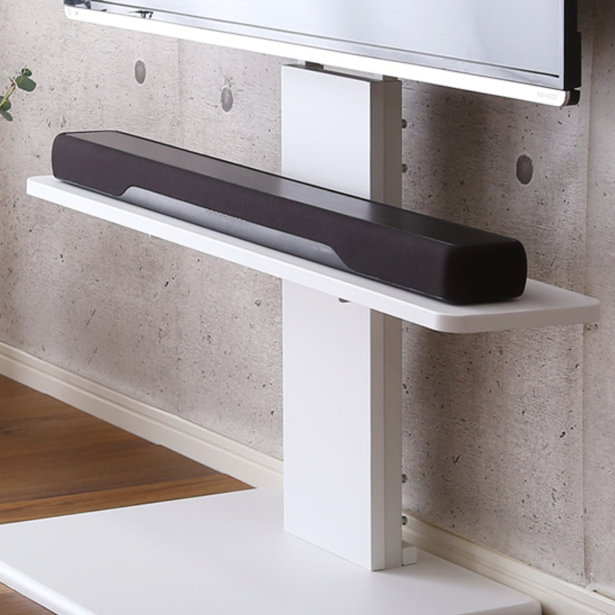 サウンドバー用棚板が100cm幅で付属しています。テレビ下にスッキリとオーディオ機器を配置できるので、映像と音声の一体感が高まり、より臨場感のある視聴体験を楽しめます。