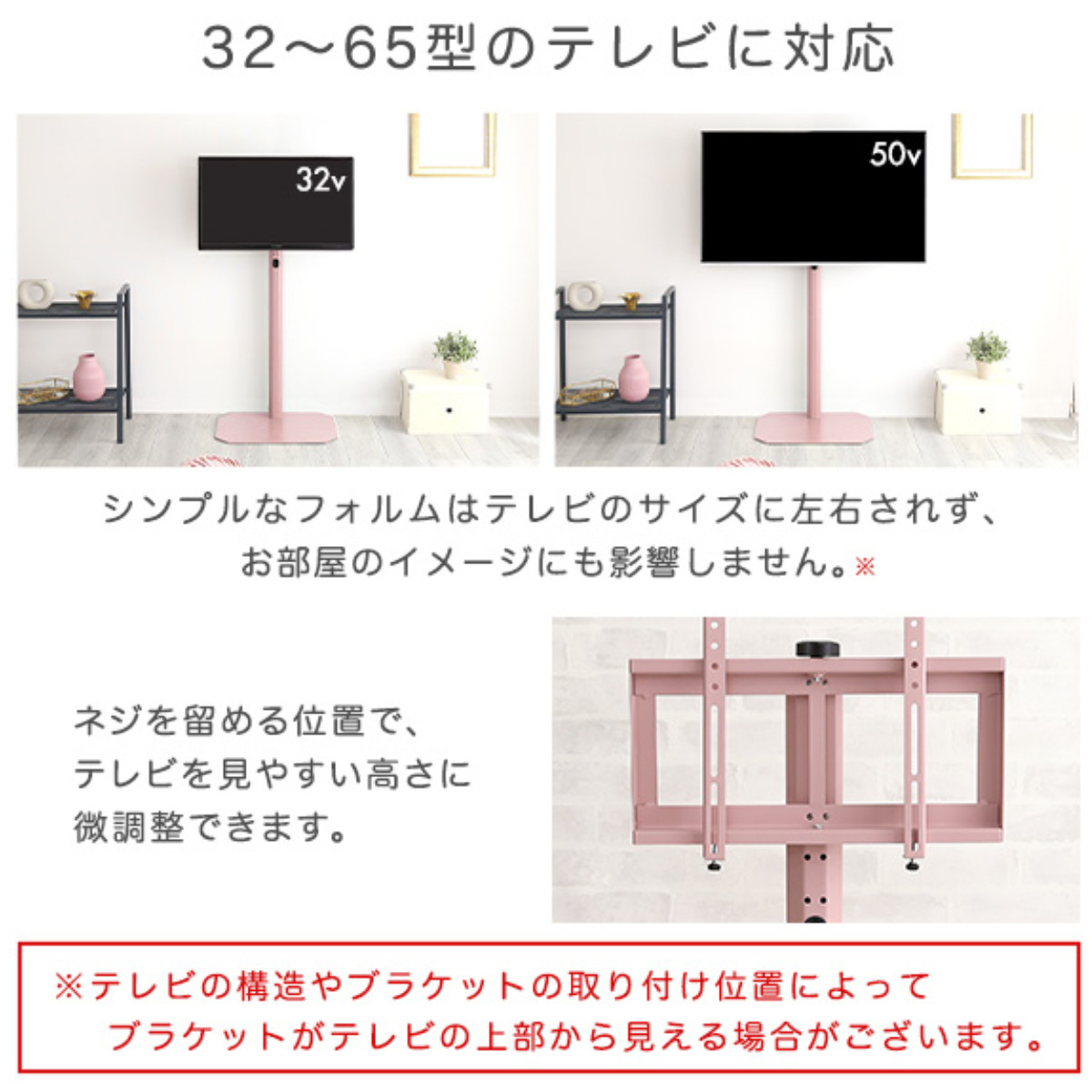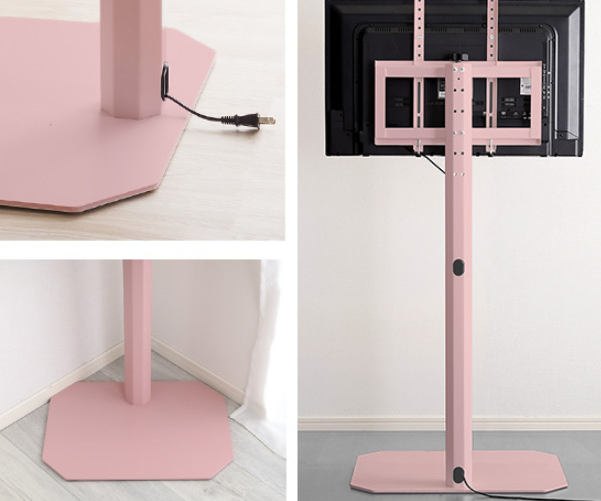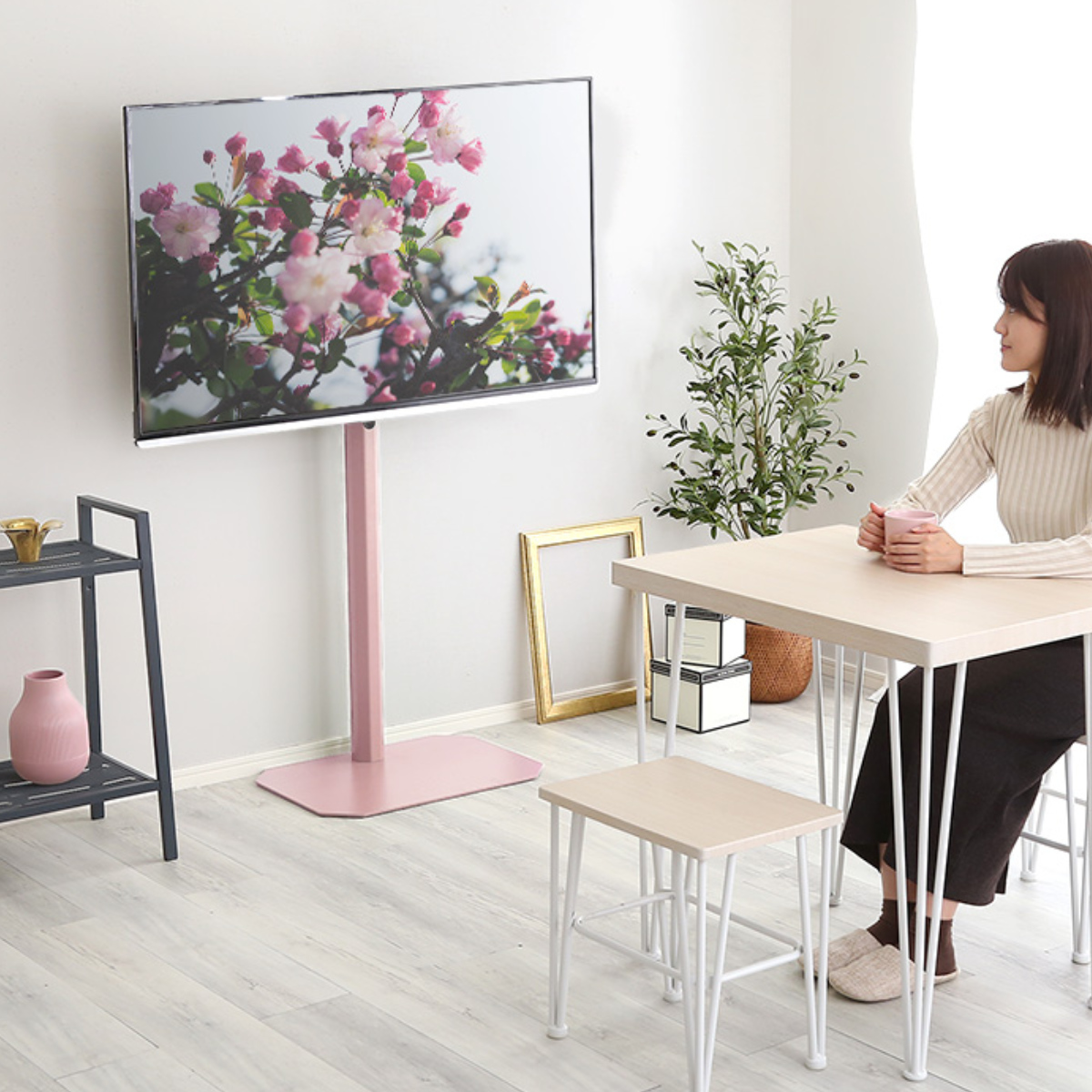 お部屋の雰囲気を華やかにする、大人かわいい壁寄せテレビスタンドです。落ち着いたピンクカラーをはじめ、ブラック・グリーン・ホワイトの4色展開。ソファやダイニングチェアに座った状態でテレビを見やすい高さです。