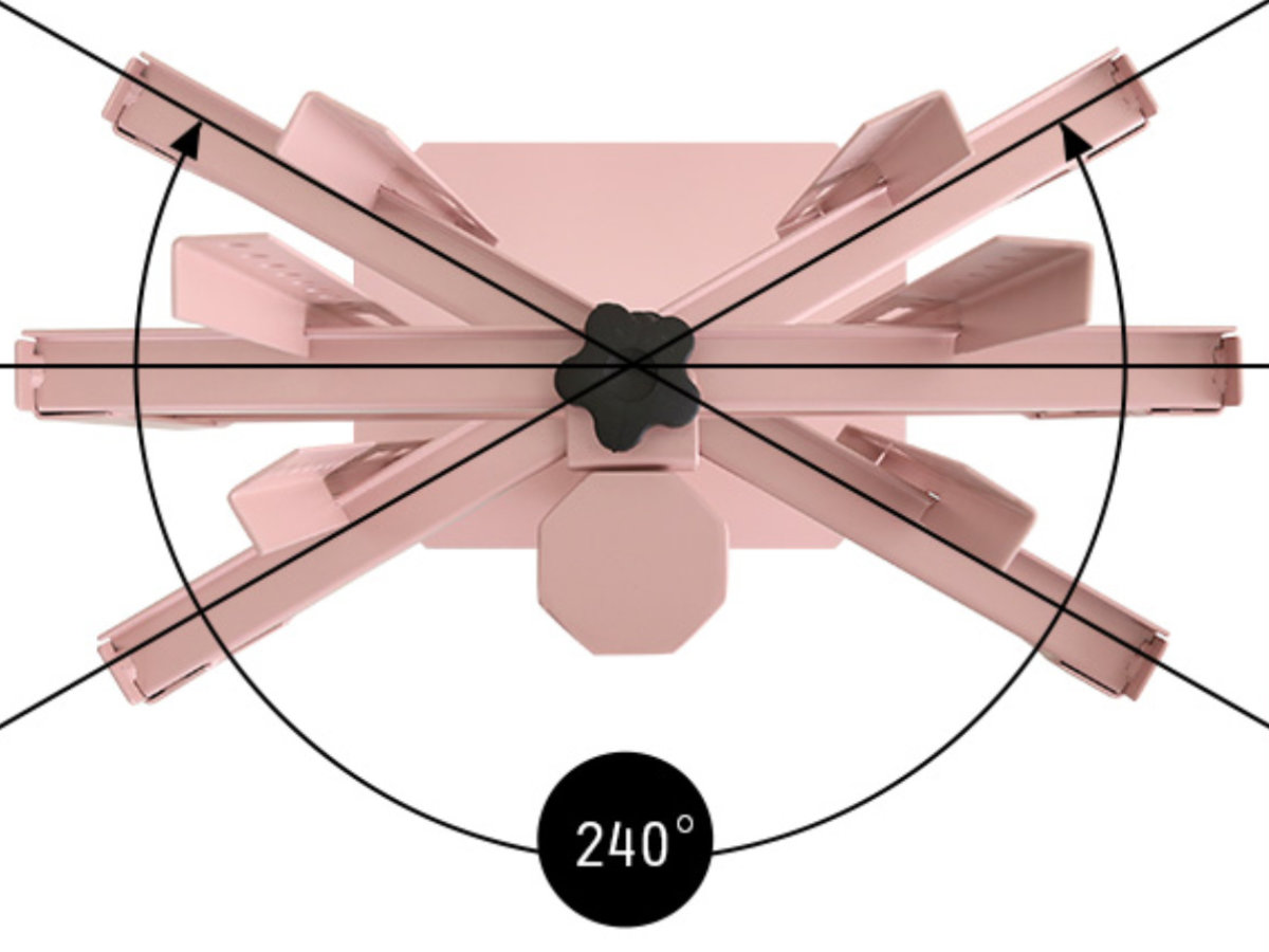 左右最大240度まで首振りできるワイドスイング機能で、見やすい角度に自由に調整していただけます。