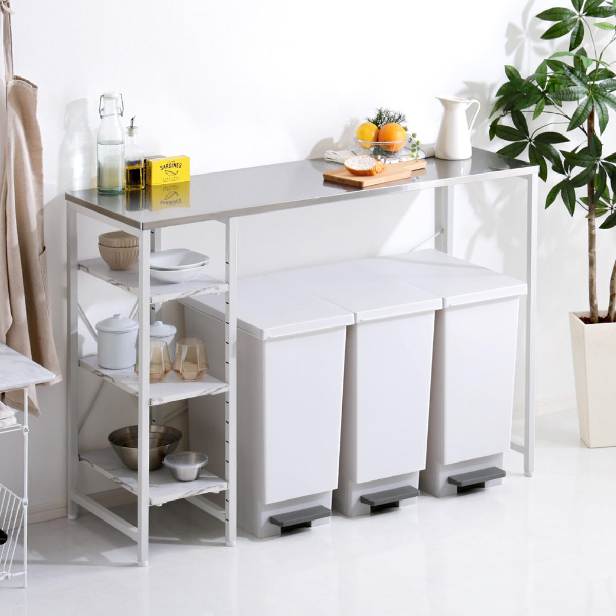 118×40cmの広々サイズで、ちょっとした調理や作業に便利です。お手入れがしやすく耐久性に優れ、清潔感のある輝きが魅力です。
