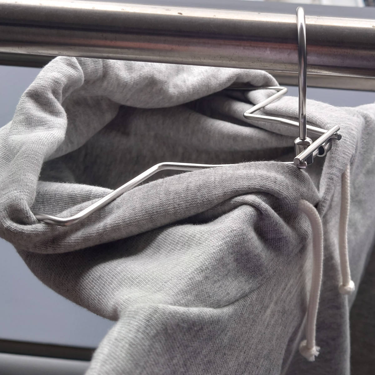 ●パーカーなどフード付き衣類を干すのに便利なステンレス製ハンガーです。