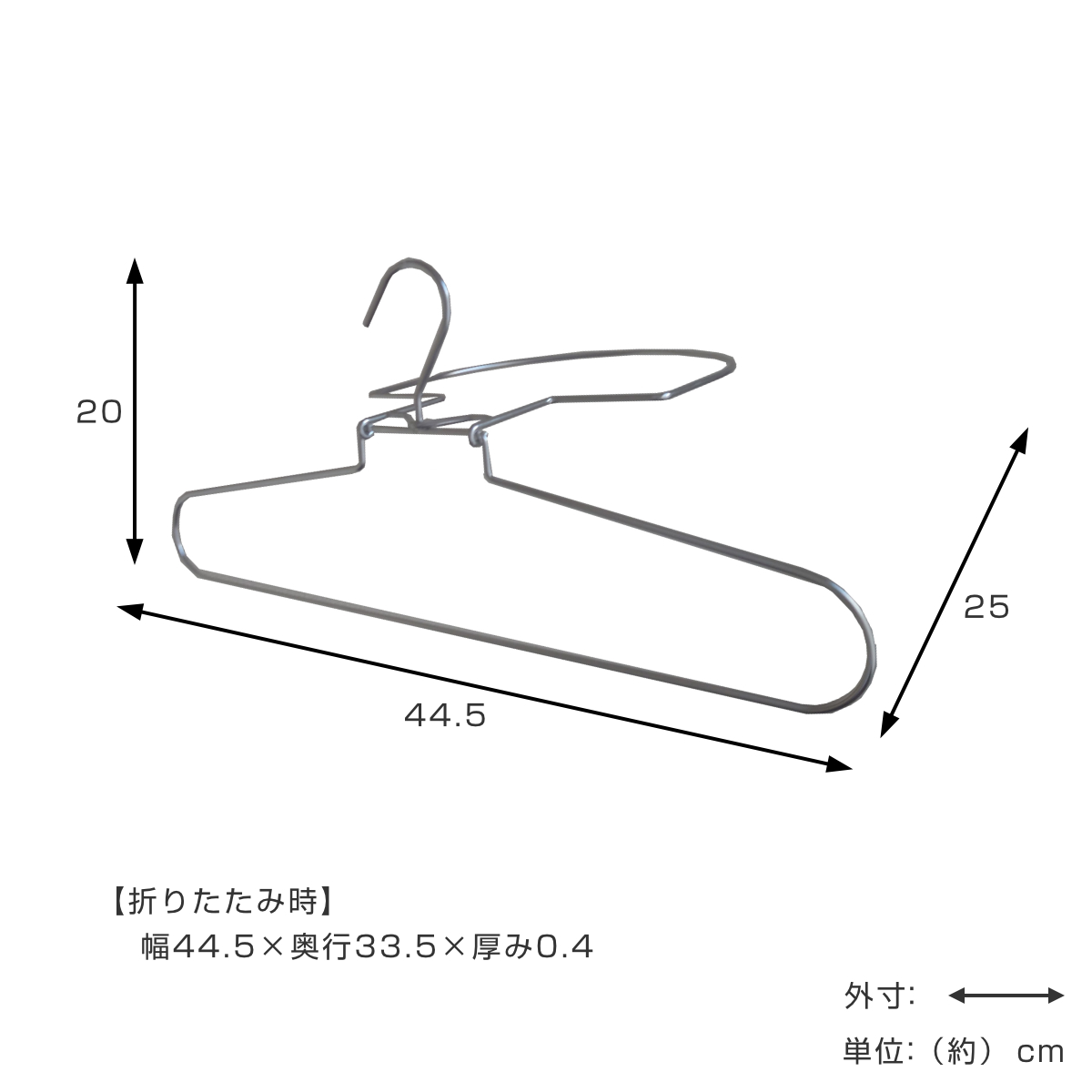 | サイズ | 約 幅44.5×奥行25×高さ20(cm) 折りたたみ時:約 幅44.5×奥行33.5×厚み0.4(cm) |