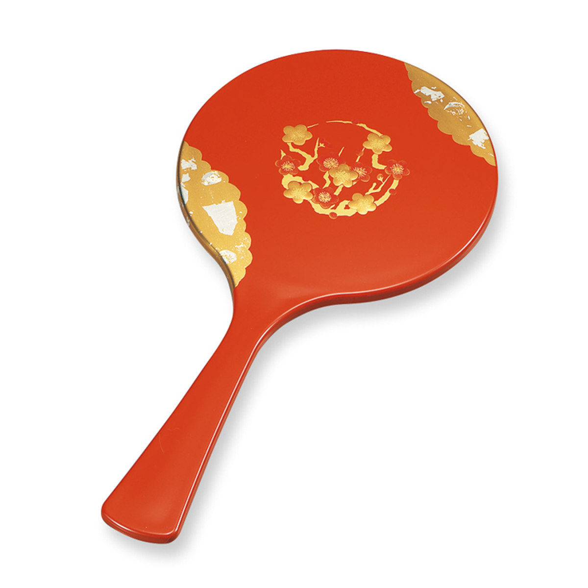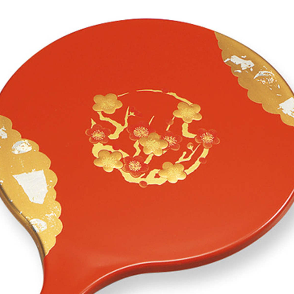 扇の優雅な形と、季節を告げる梅の花をあしらった、上品な手鏡です。光の当たり方でほのかに輝く装飾が、手元に華やぎと落ち着きを添え、日常の身だしなみをより美しく演出します。コンパクトなサイズで持ち運びやすく、普段の身だしなみやお手入れに便利です。大切な方への贈り物や記念品としても喜ばれる逸品です。