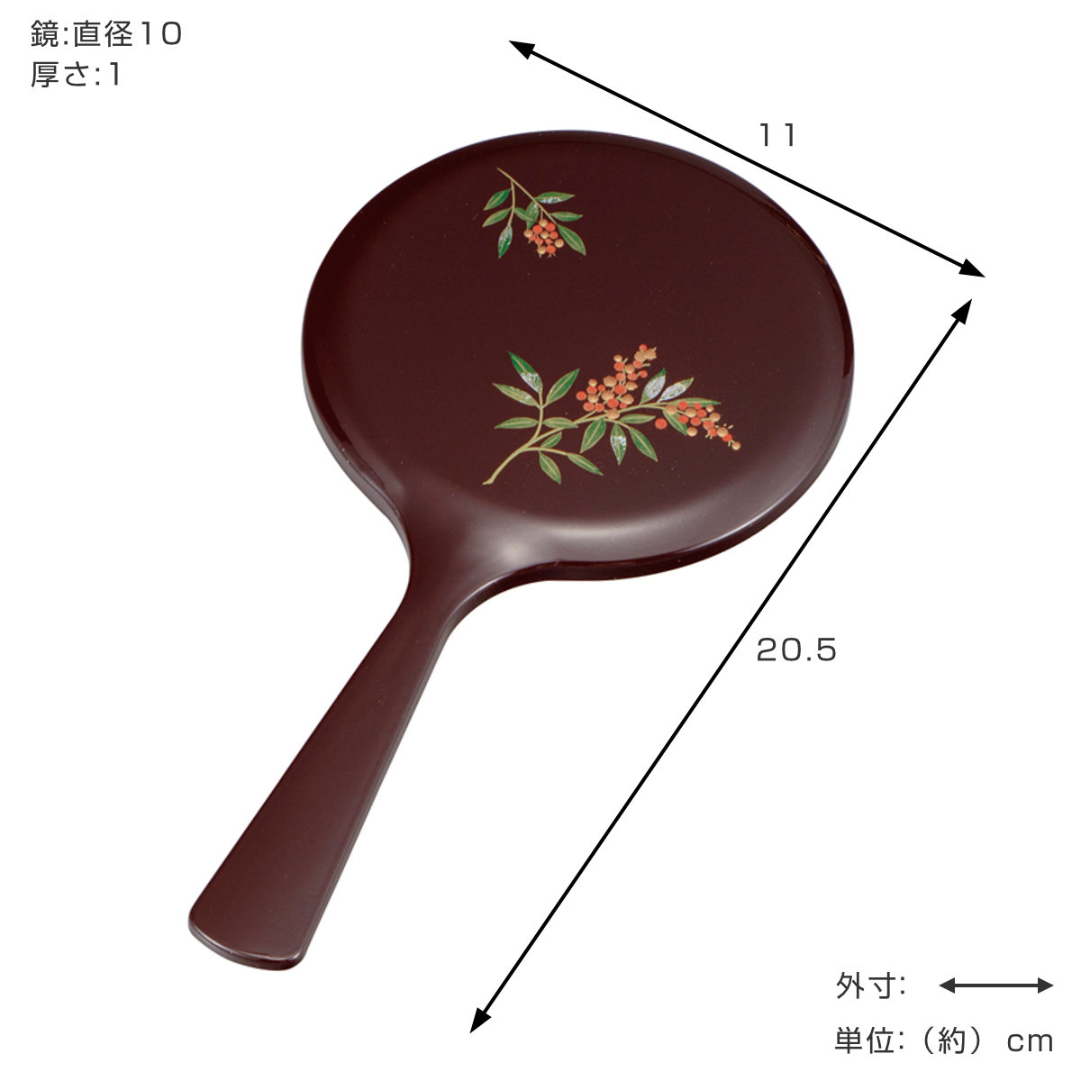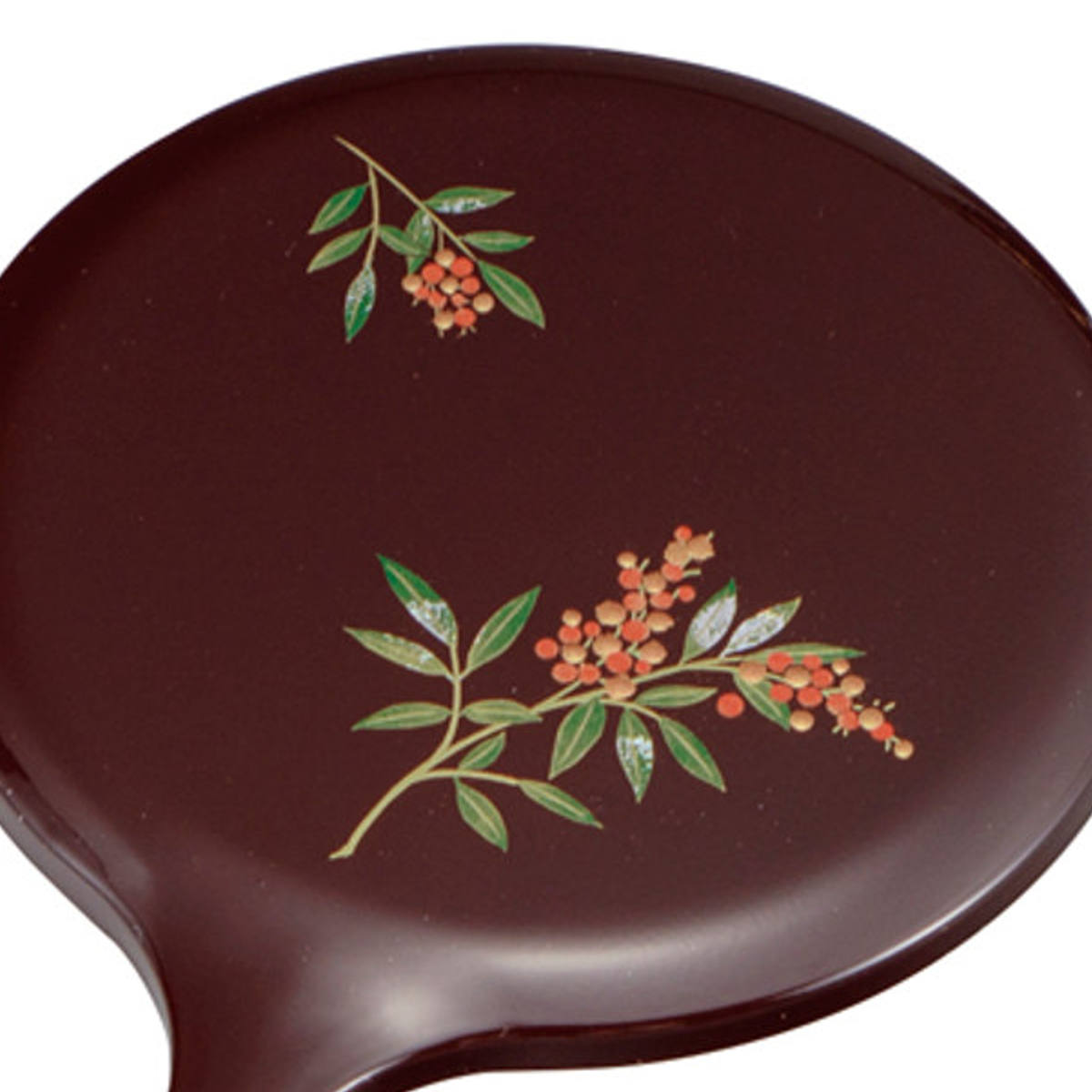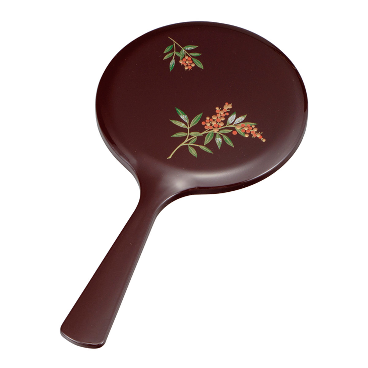 縁起の良い南天の柄をあしらった、素朴で優しい雰囲気の手鏡です。控えめながらも温かみのあるデザインは、日常に自然に馴染み、手元にほっとする癒やしを添えます。コンパクトなサイズで持ち運びやすく、普段の身だしなみやお手入れに便利です。大切な方への贈り物や記念品としても喜ばれる逸品です。