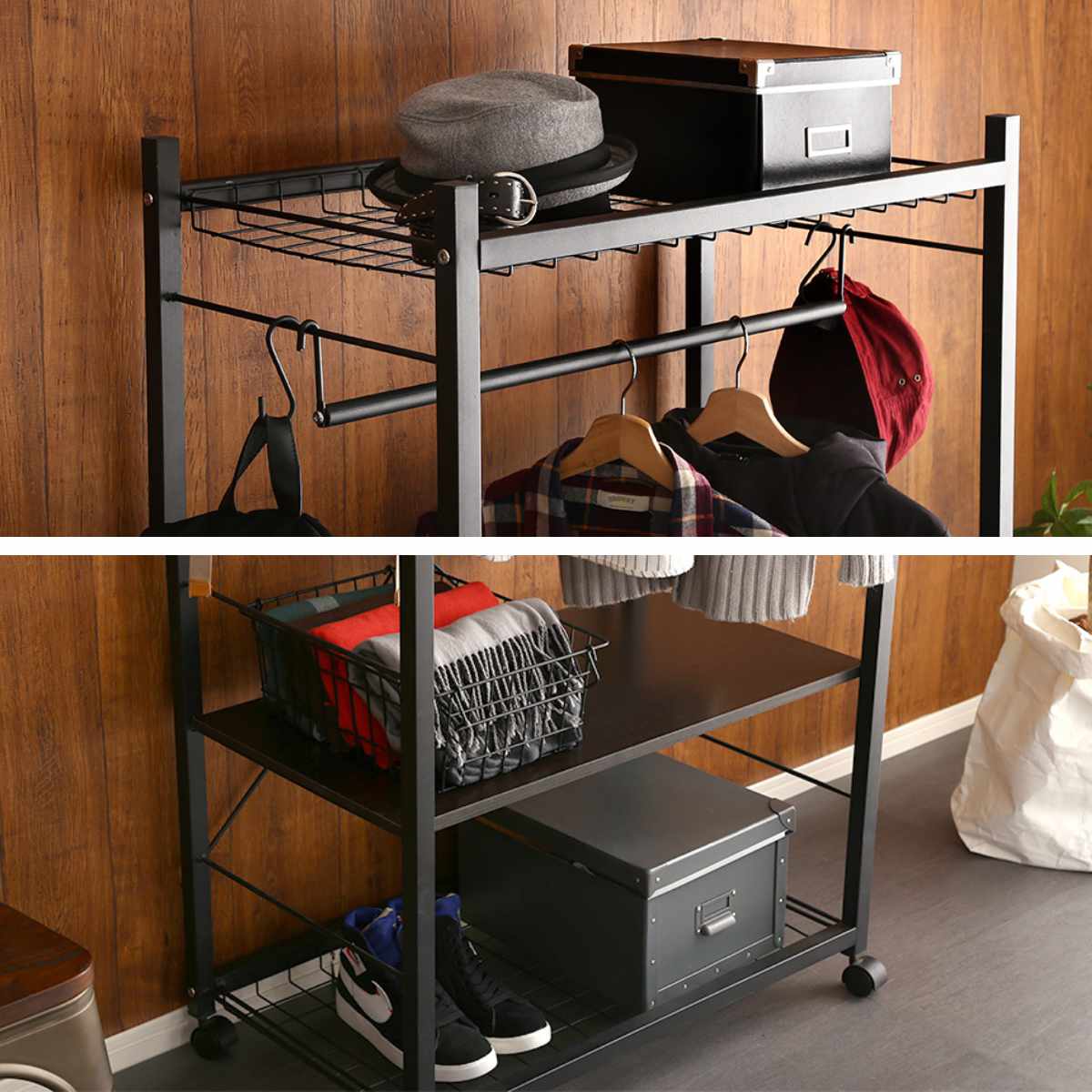 カバンや小物などを置くのにぴったりな上段と下段の棚は、使い勝手のいいメッシュ仕様で通気性抜群です。