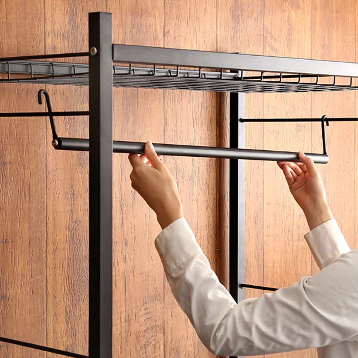 ハンガーポールは左右のバーにかけるだけで簡単に設置できます。衣服に合わせて高さも自在に調整可能。丈の長いコートやワンピースもすっきり収納できます。