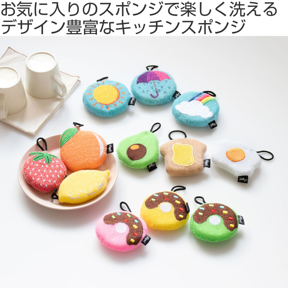 フルーツ・朝食・天気・ドーナツ型と遊び心あふれたユニークなキッチンスポンジです。3個セットで並べてもカラフルで可愛く、面倒な食器洗いも少し楽しい気分に。