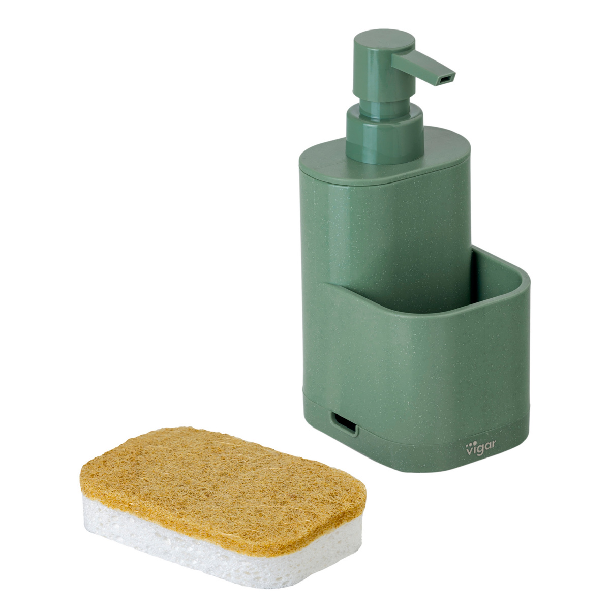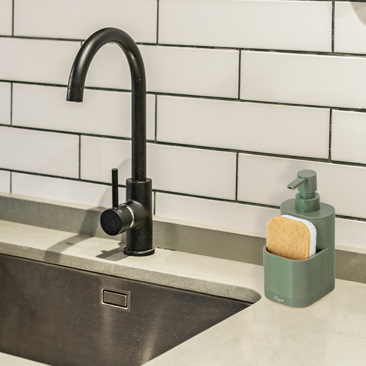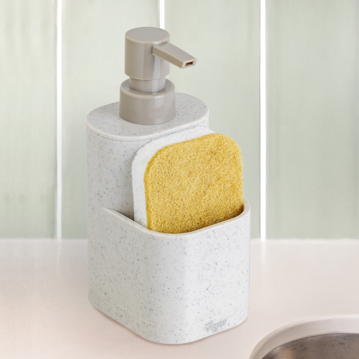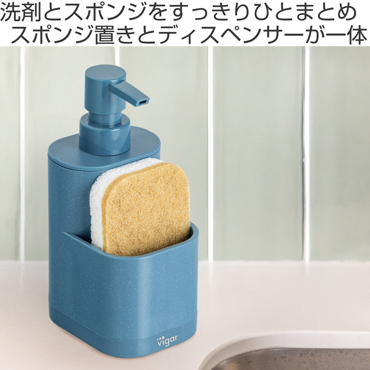 スポンジ置きとディスペンサーが一体になったスポンジラックです。シンク周りの洗剤やスポンジを1つにまとめてすっきり整理整頓できます。また、スポンジを手に取って、そのまま片手で洗剤をスポンジに出せるので、食器洗い作業もスムーズに行えます。