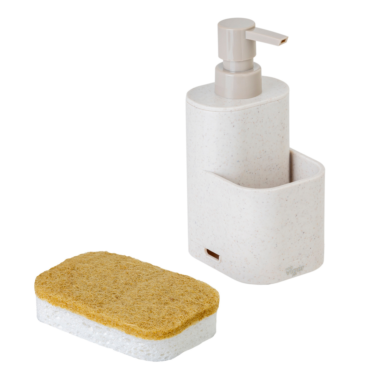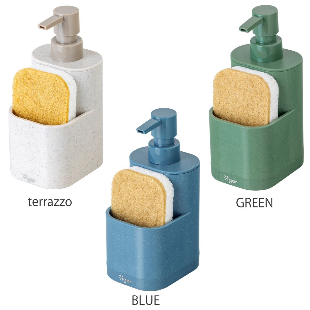 環境に優しい植物生まれのキッチンスポンジが付属しています。通常の食器洗いで使うソフト面はセルロース繊維で、高い吸水性と速乾性があります。ハード面はサイザル麻を採用しており、頑固汚れもしっかり落とします。