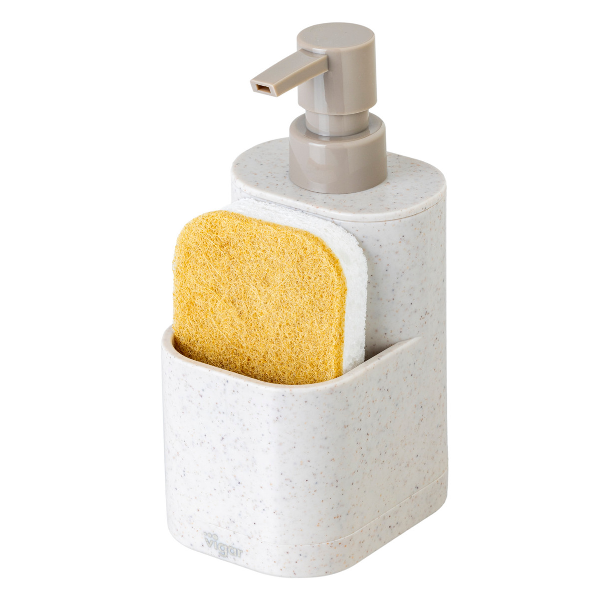 スポンジ置きとディスペンサーが一体になったスポンジラックです。シンク周りの洗剤やスポンジを1つにまとめてすっきり整理整頓できます。また、スポンジを手に取って、そのまま片手で洗剤をスポンジに出せるので、食器洗い作業もスムーズに行えます。