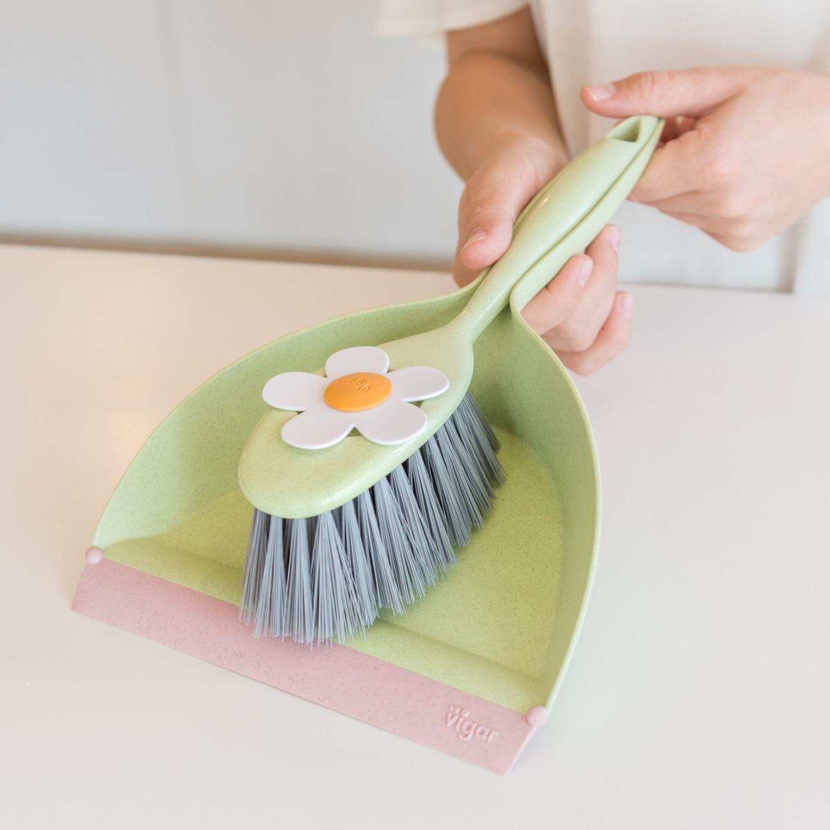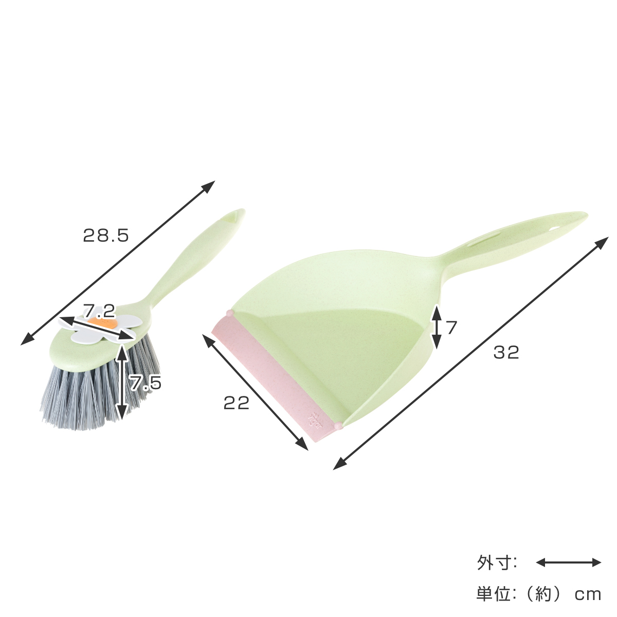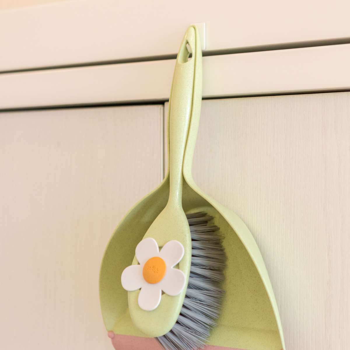 可愛いお花が付いたほうきとちりとりのセットです。デスクやテーブル上の掃除に最適なサイズで、パンくずや消しカスをサッと片づけられます。
