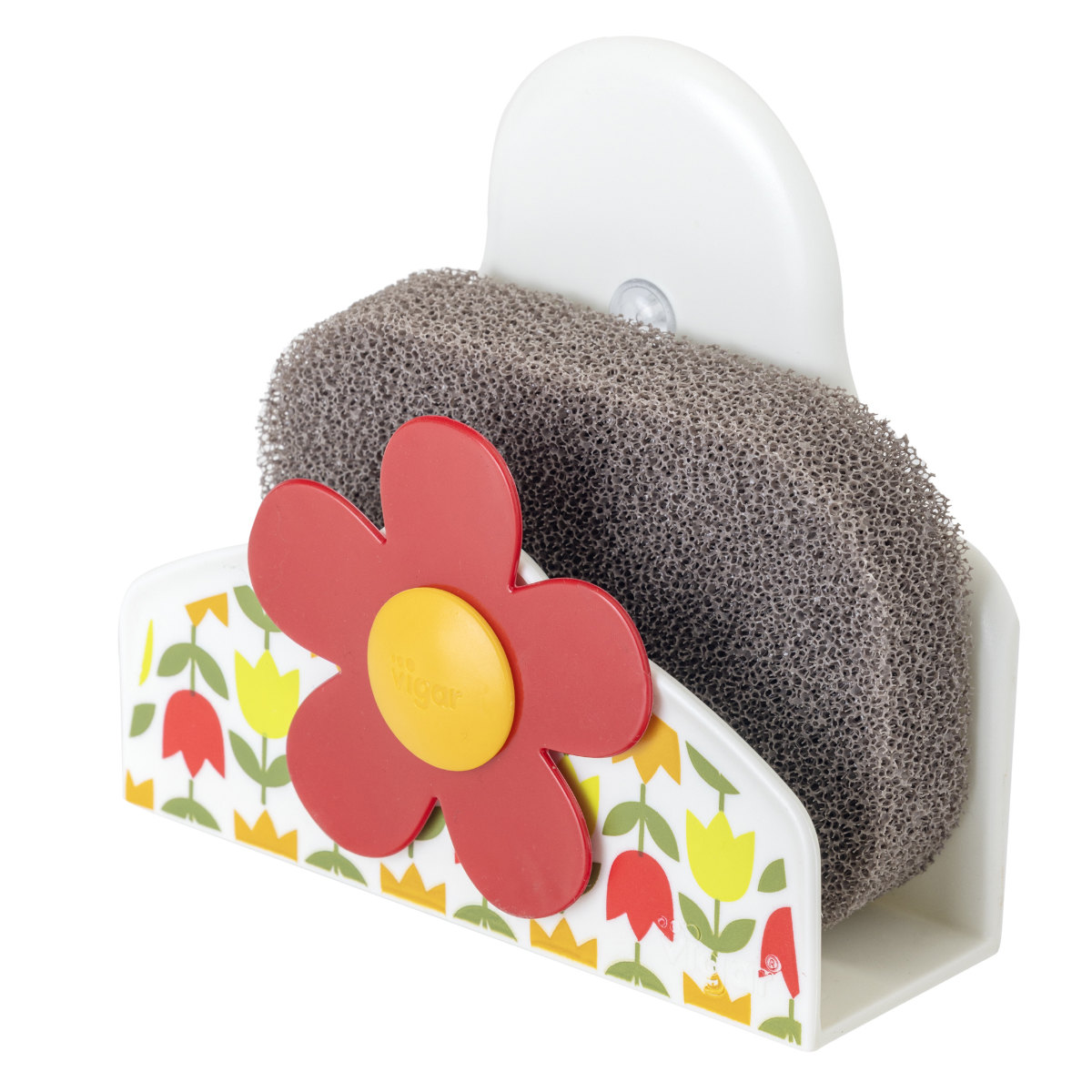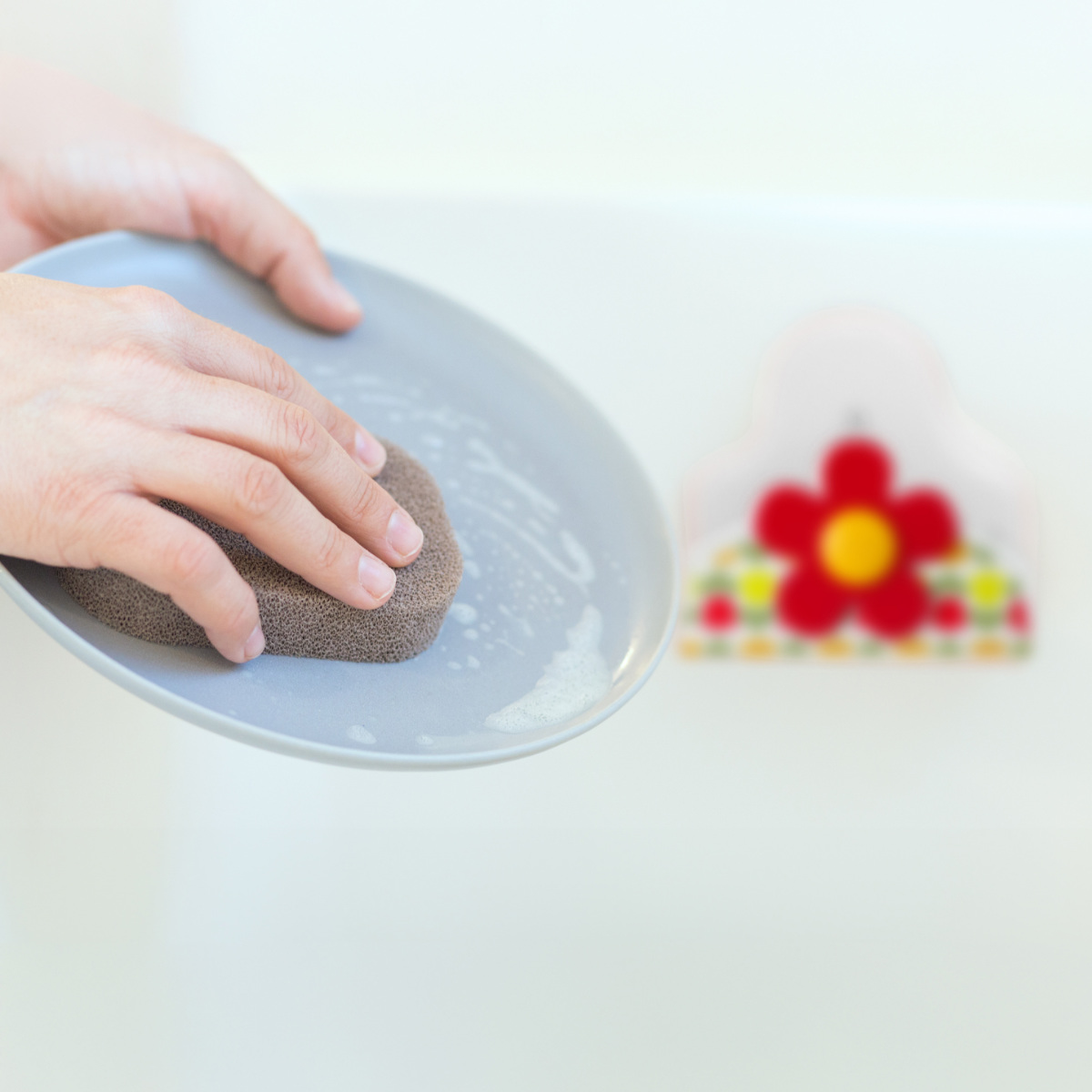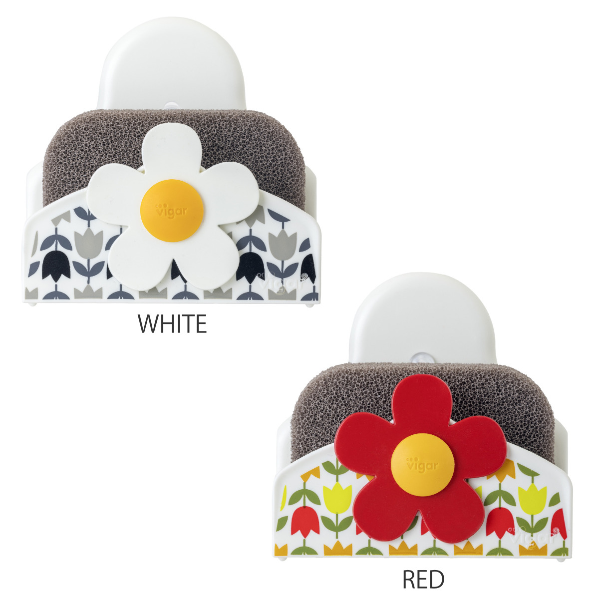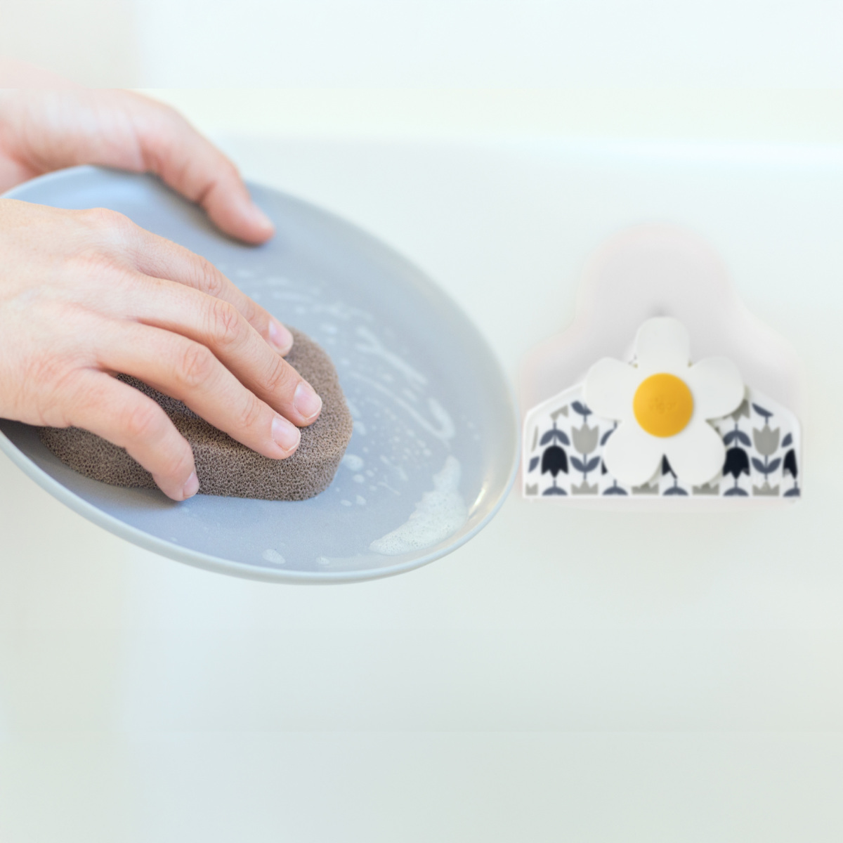 スポンジを乾かしながら置いておけるスポンジホルダーです。ホルダー部分はチューリップのデザインで、真ん中にはお花のモチーフがあります。キッチンを華やかにしてくれるアイテムです。