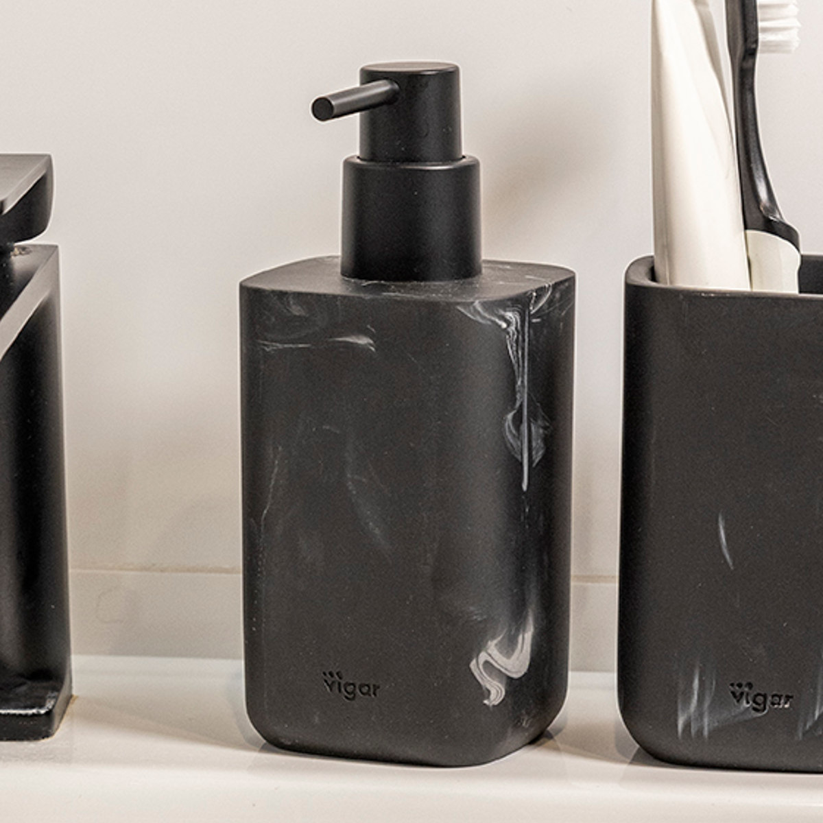 落ち着いたマットな質感のディスペンサーです。シンクにすっきり置けるスリムなフォルムです。重厚感のある佇まいで、洗面スペースやキッチンをワンランク上の空間に仕上げます。