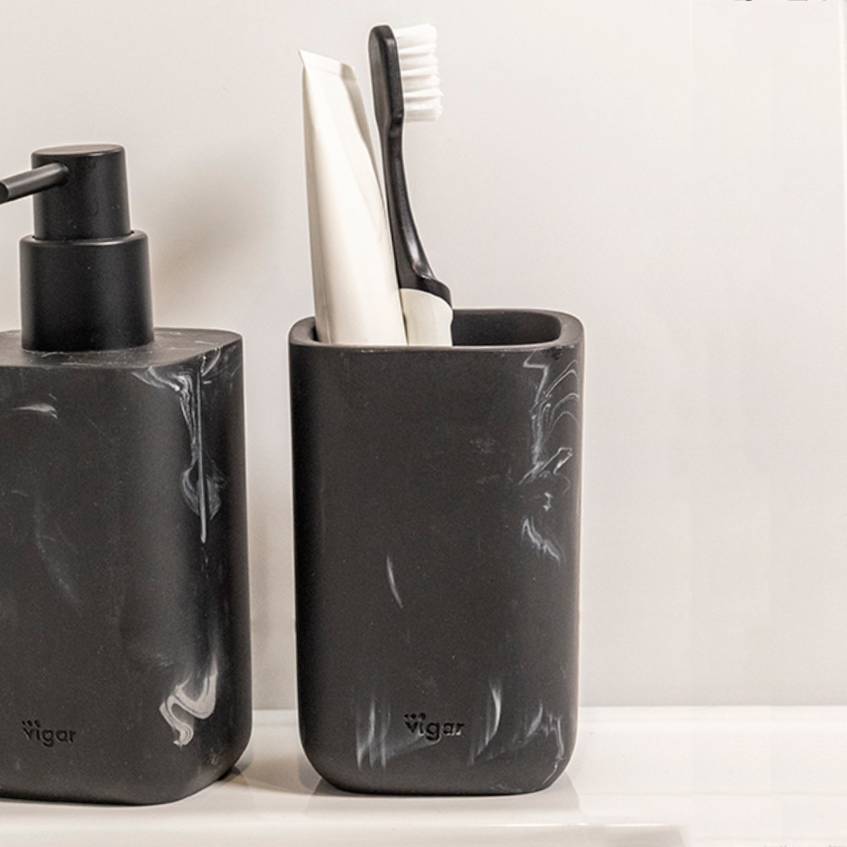 落ち着いたマットな質感の歯ブラシホルダーです。洗面台にすっきり置けるスリムなフォルムです。重厚感のある佇まいで、洗面スペースをワンランク上の空間に仕上げます。