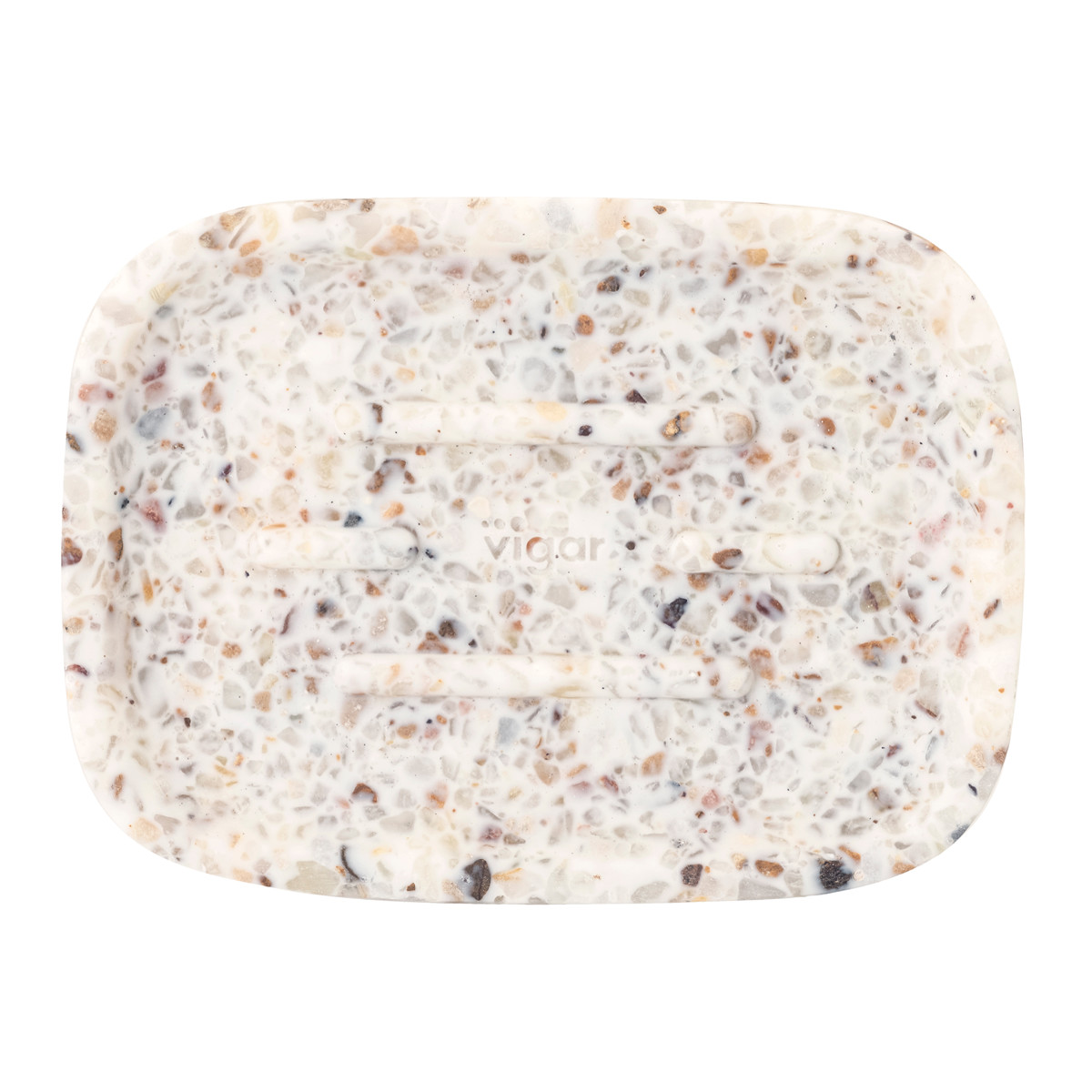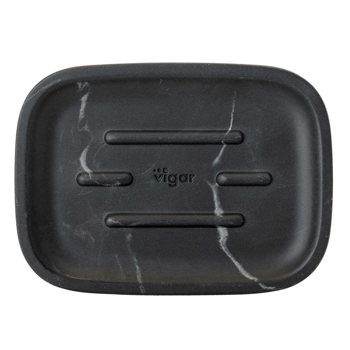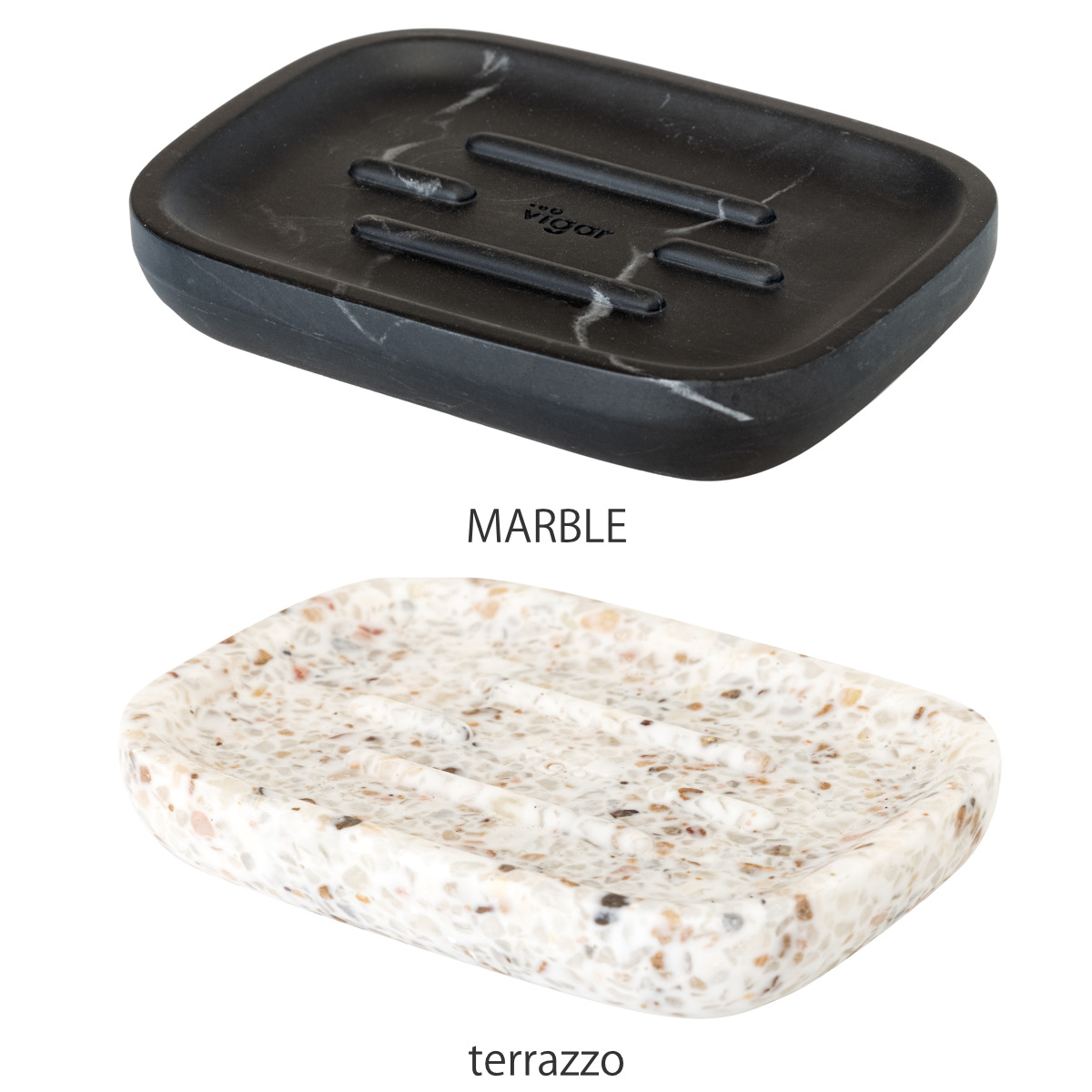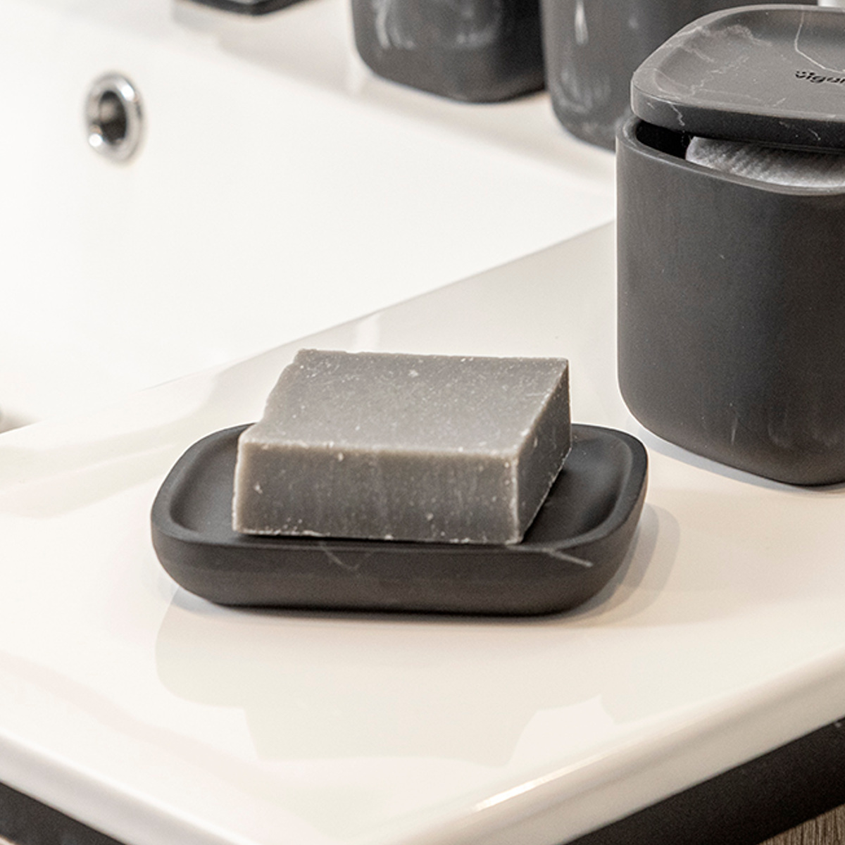 落ち着いたマットな質感のソープトレイです。重厚感のある佇まいで、洗面スペースやバスルームをワンランク上の空間に仕上げます。