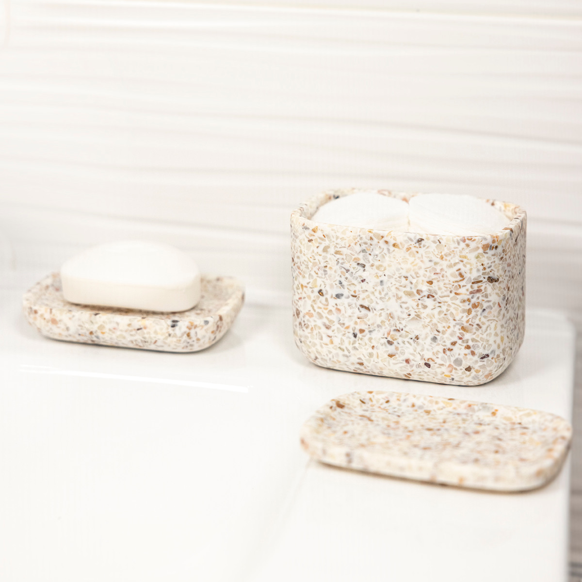 陶器のような見た目で、スタイリッシュなデザインの「ZENSE」の洗面用品シリーズ。収納ケースやソープトレイ・歯ブラシホルダーなど、シリーズで揃えることで統一感のある落ち着いた空間に演出できます。
