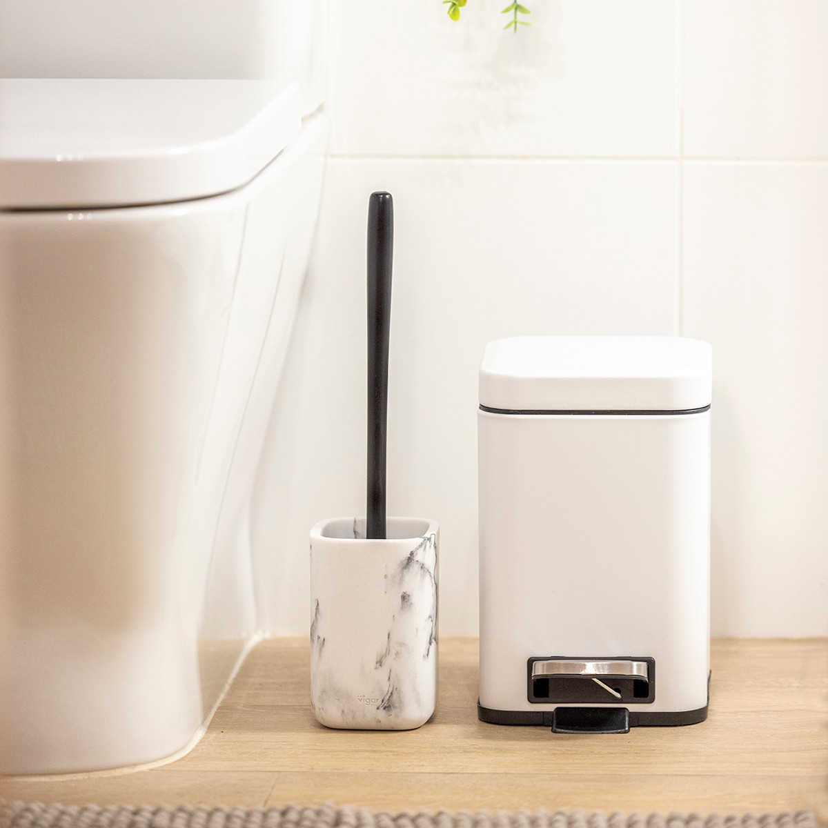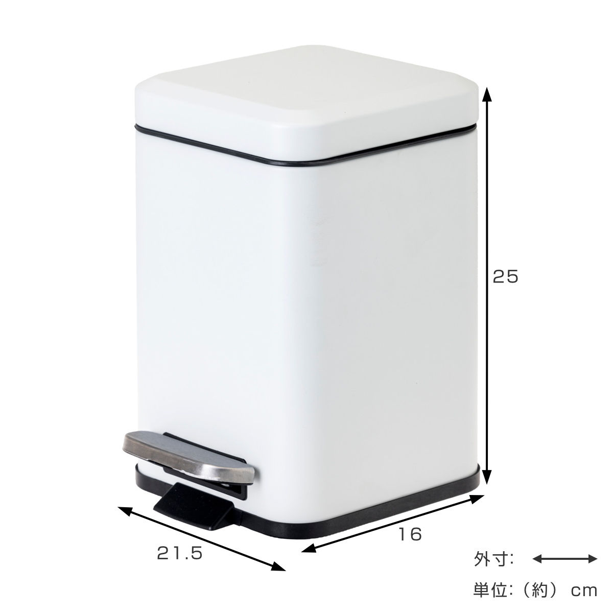 シンプルなペダル式ごみ箱です。トイレの角や壁面に収まりやすい四角いフォルムで、トイレ空間にすっきりと調和します。トイレや洗面所はもちろん、リビング・寝室・デスク下など、様々な場所で活躍する便利なサイズです。