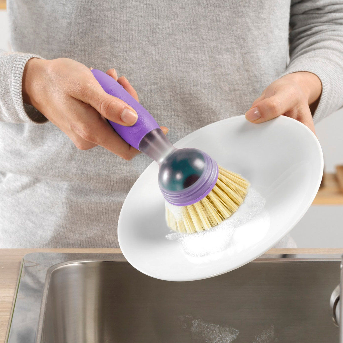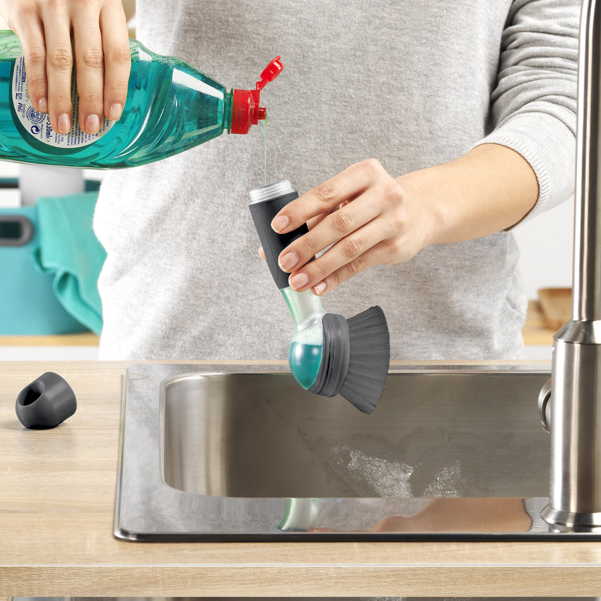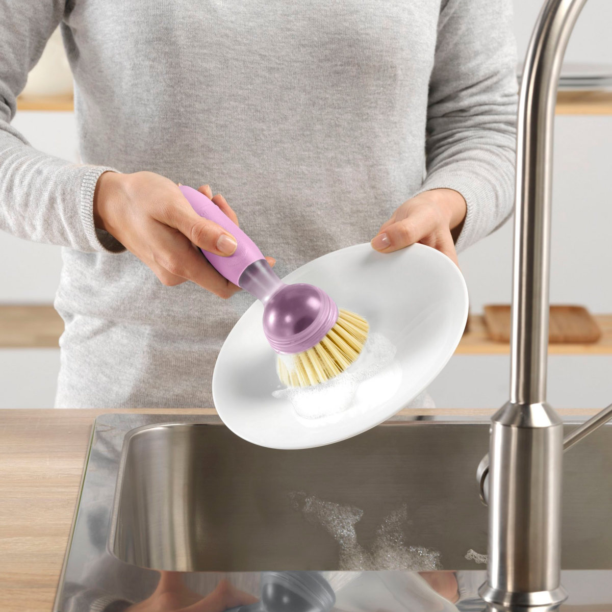 食器洗いが快適になるソープディスペンサー付きブラシ