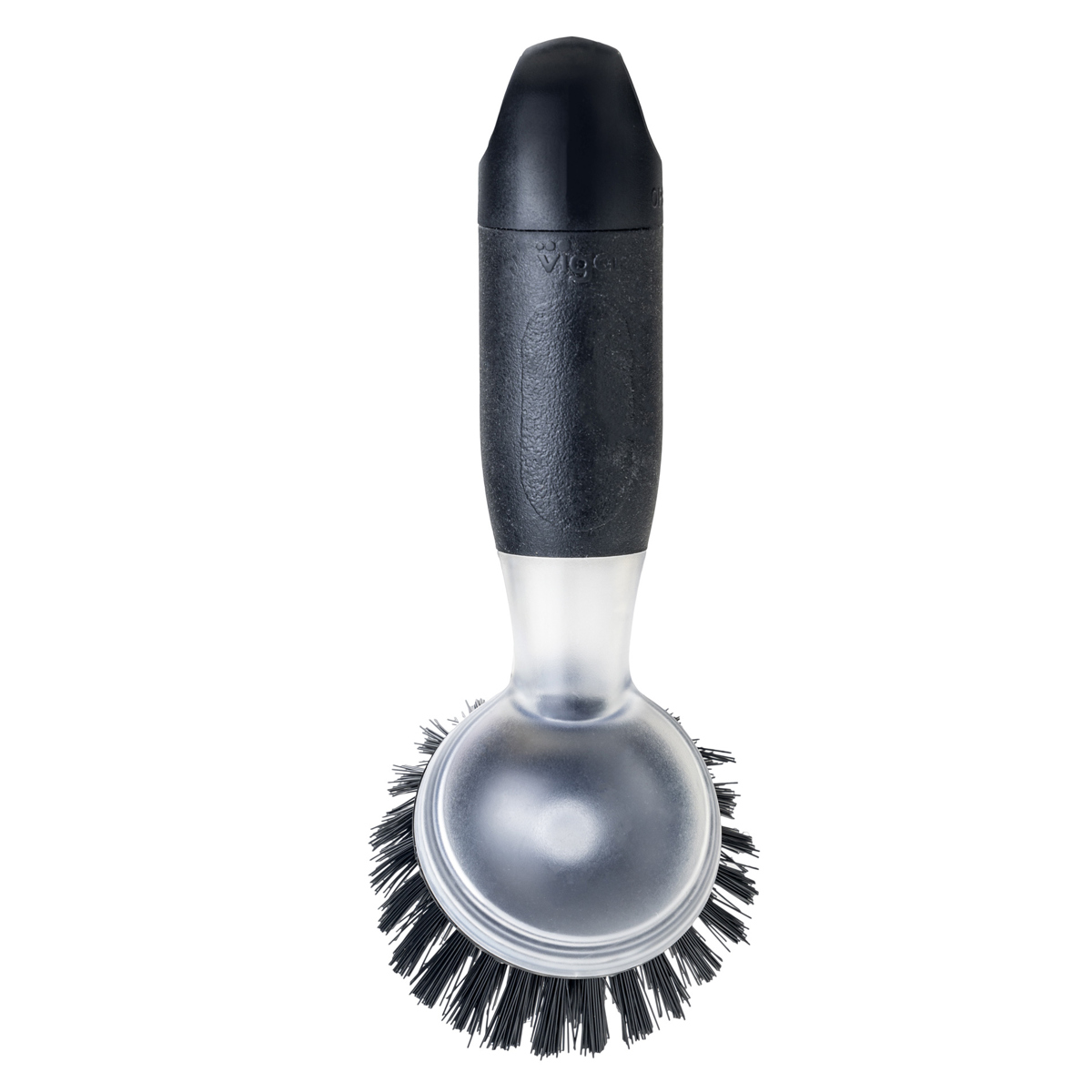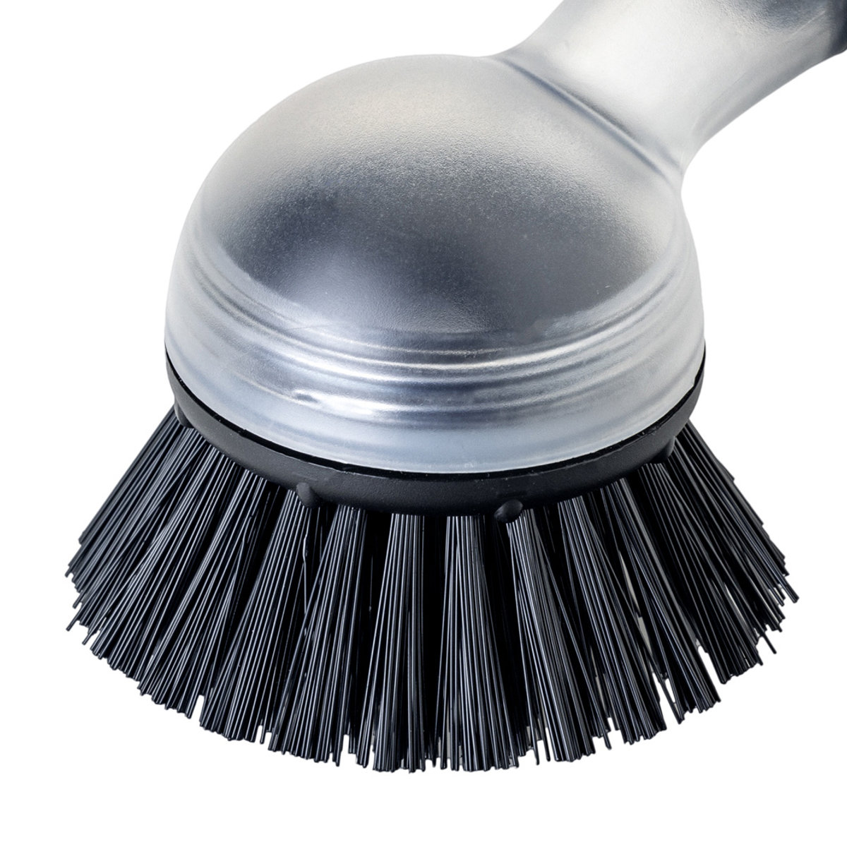 ブラシ部は頑固な汚れもしっかり落とす丈夫な毛先です。程よくコシのあるブラシで、食器やシンクを傷つけにくいので、安心してお使いいただけます。
