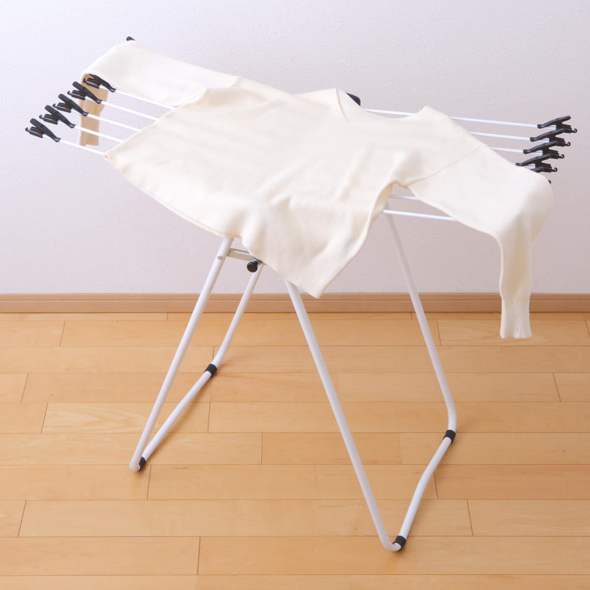 靴下などの細かな物や、干しにくい枕やクッション等を物干しの上に平干しすることもできます。ちょっとしたものを広げて干したい時にオススメです。