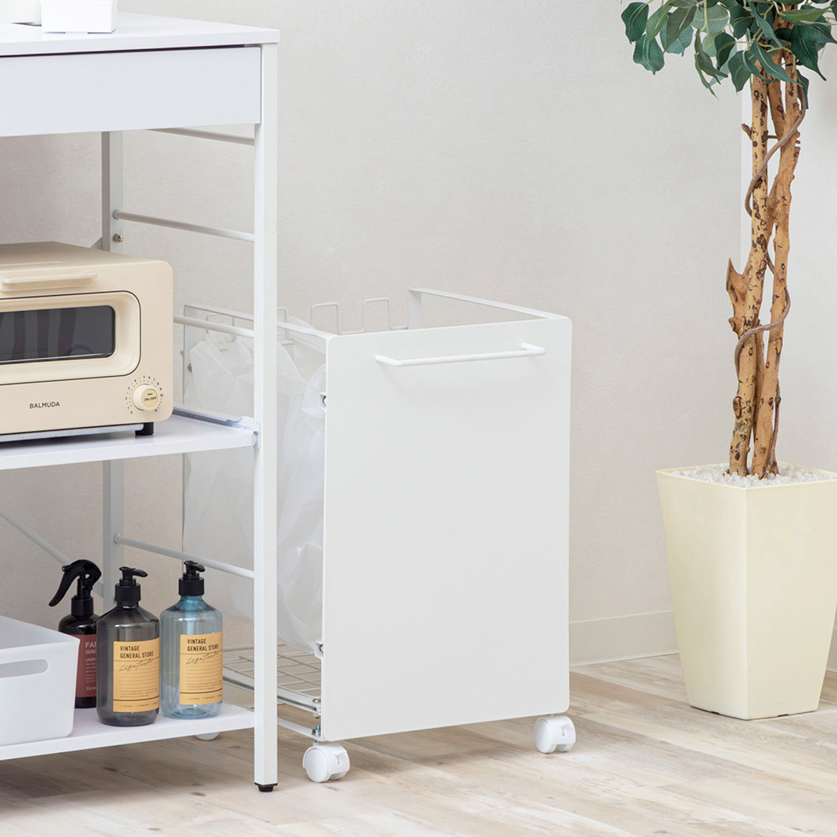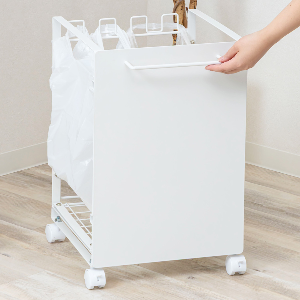 レジ袋を掛けるだけで簡単にセットできる分別式ダストボックスです。正面のスチールパネルがゴミを隠し、生活感を感じさせずインテリアを損ないません。