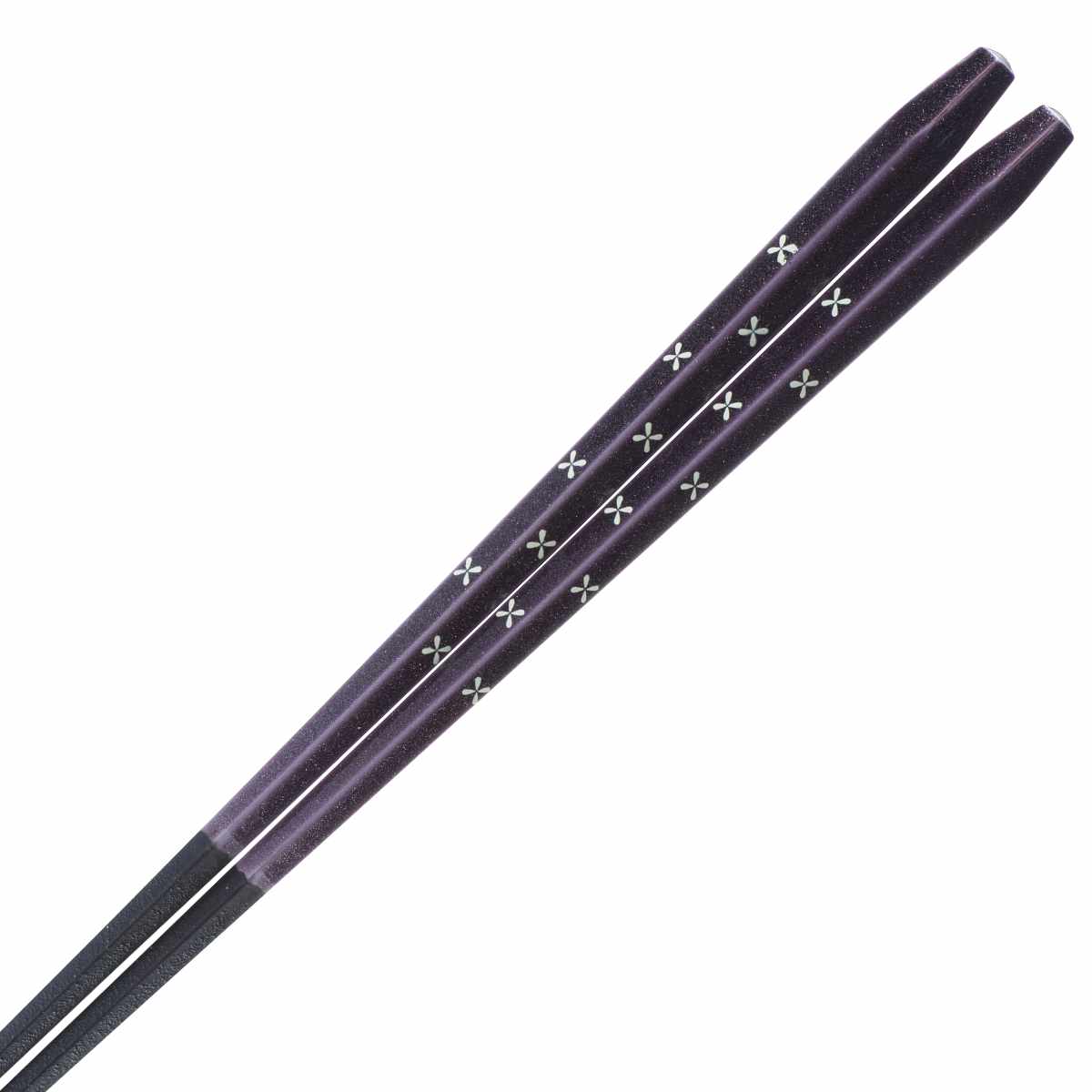 渋い色ながら上品なラメでキラキラ輝く天然木製の五角箸