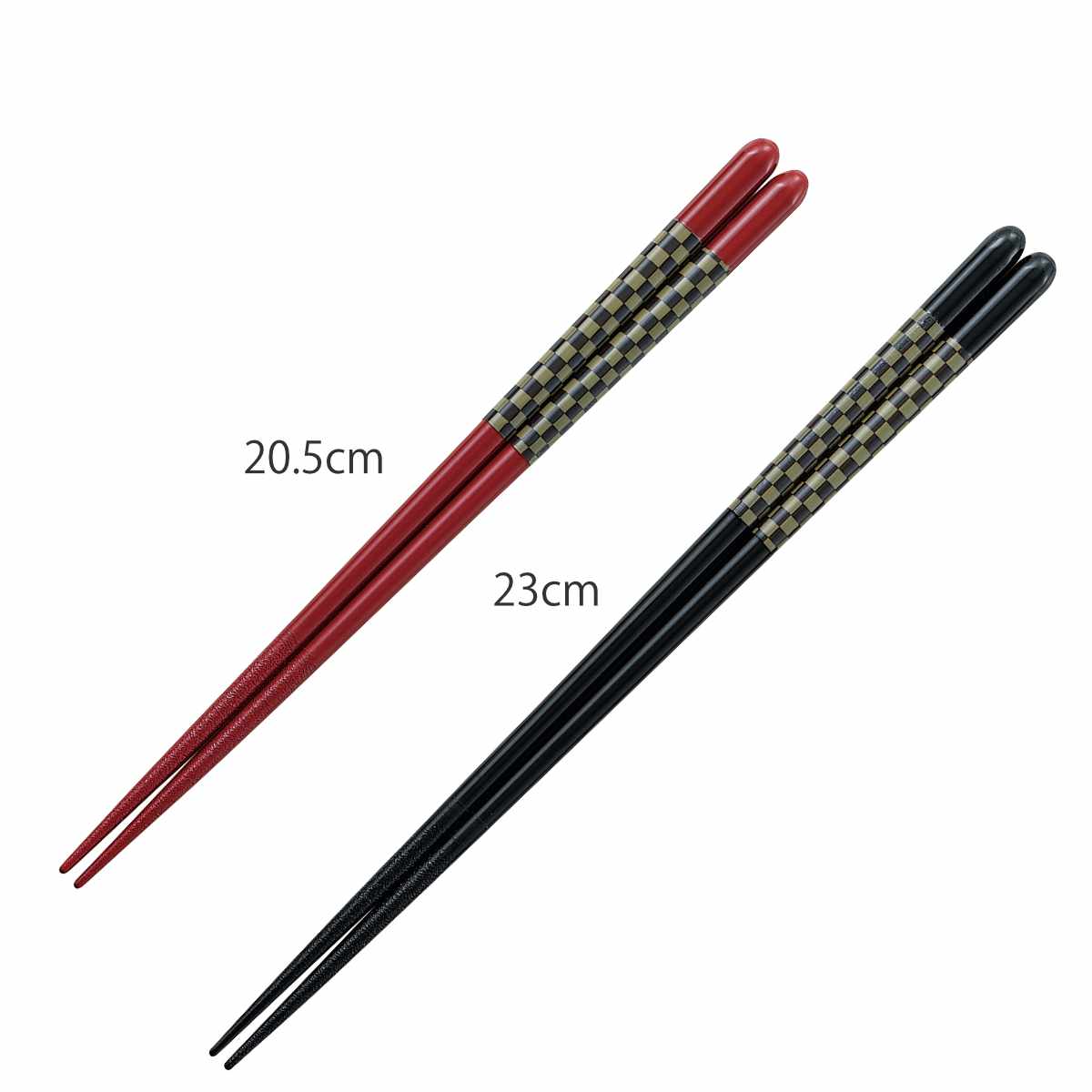 食洗機による高温水や温風にも耐え、アルカリ洗剤に強く耐久性の高い仕上がりです。20.5cm、23cmのサイズからお選び下さい。細かいチェック柄が特徴で使うほどに手になじんできます。色違いのお箸で揃えると、夫婦箸になります。