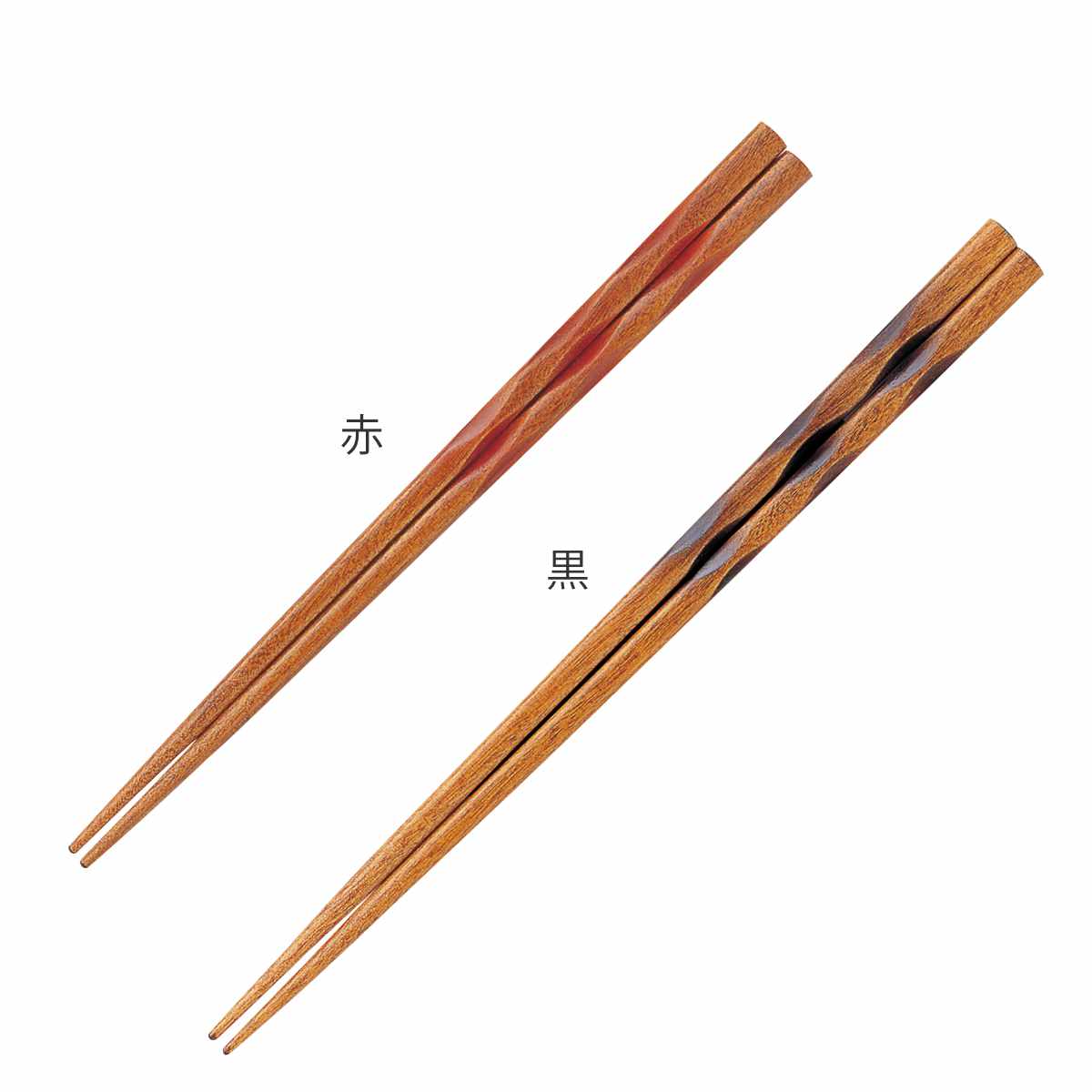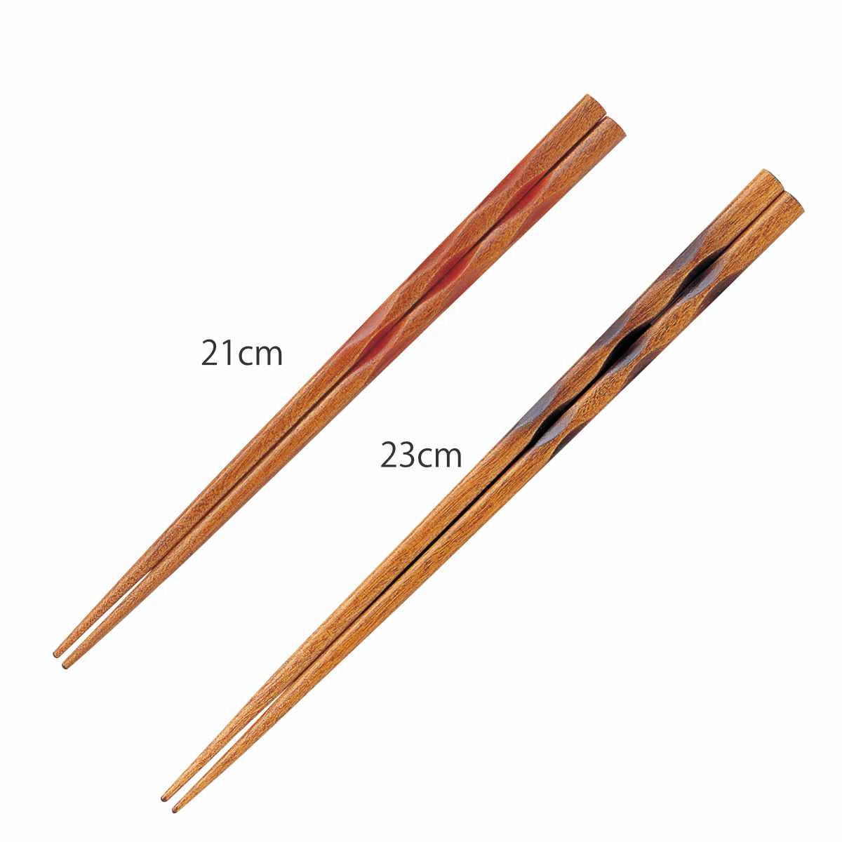 使いやすさなど機能性を追求しながら端正に仕上げた正統の逸品です。21cm、23cmのサイズからお選び下さい。自然が織りなす木肌を生かしたデザインです。色違いのお箸で揃えると、夫婦箸になります。