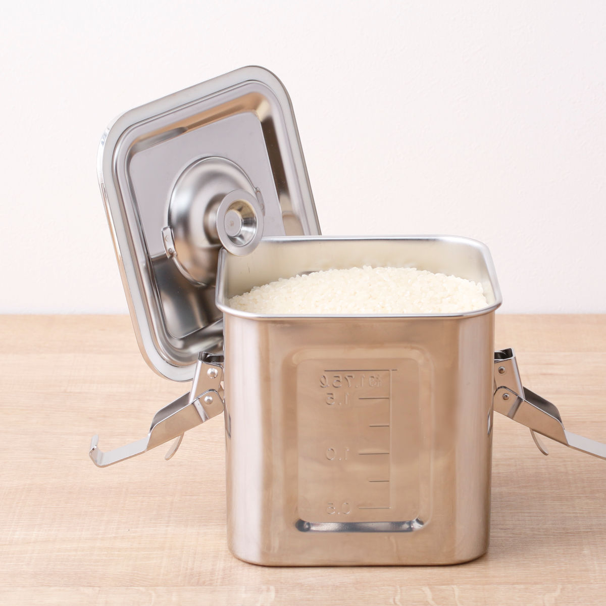 丈夫でサビにくいステンレス製の米びつ