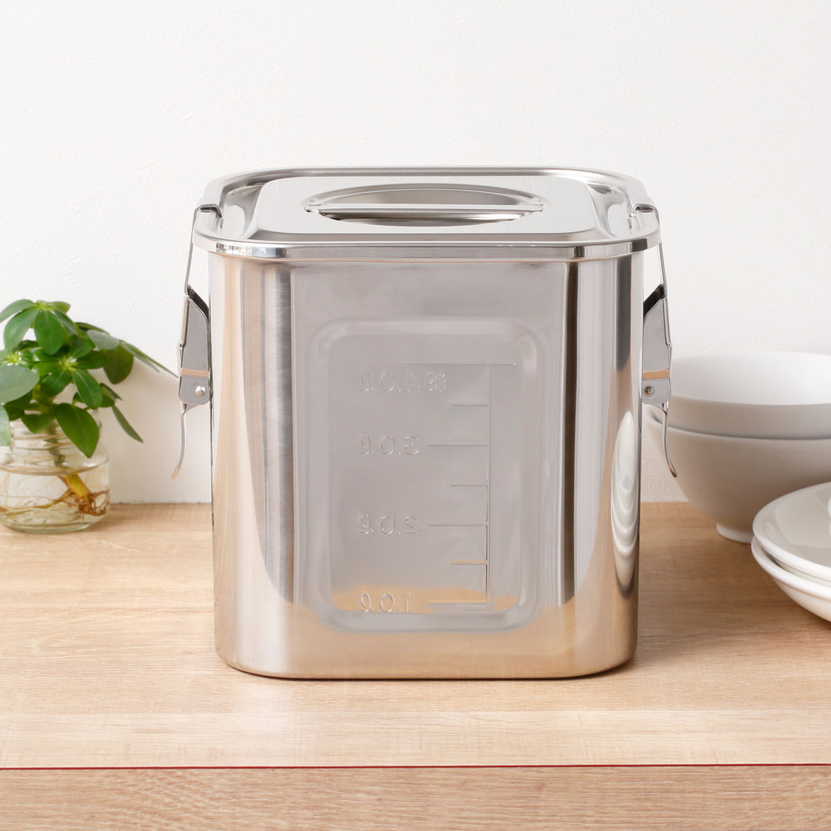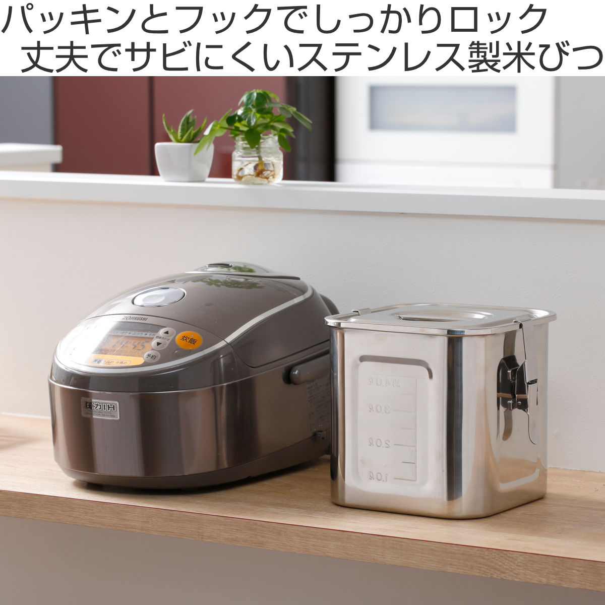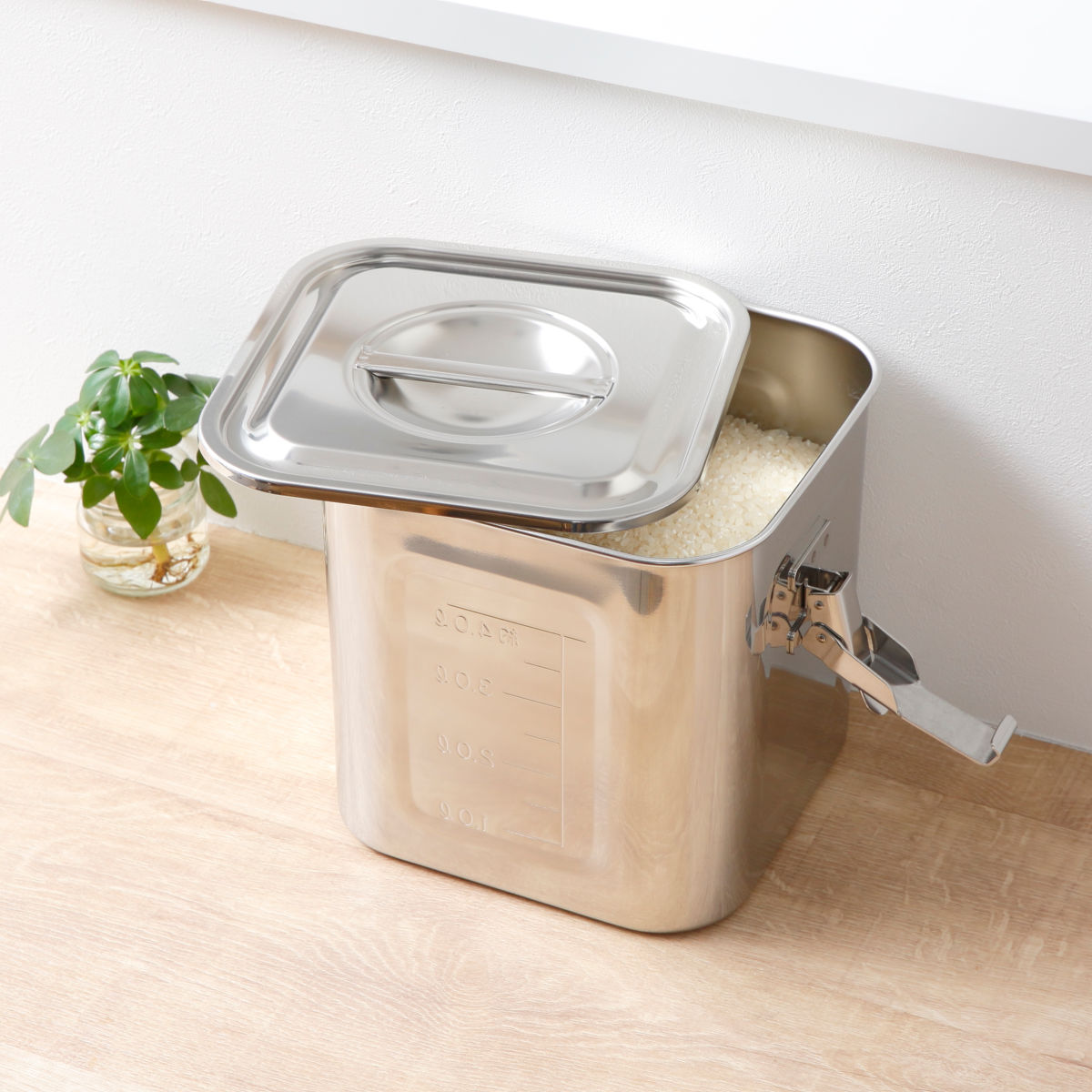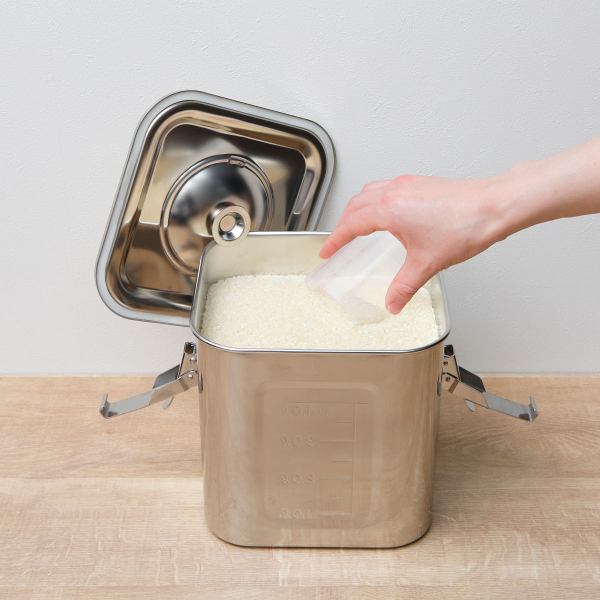 丈夫でサビにくいステンレス製の米びつです。直射日光を防ぎ、約4kgのお米を保存することができます。ステンレス製なので、静電気の影響が少なく、お米が容器にくっつきにくく、最後まで無駄なく使えます。