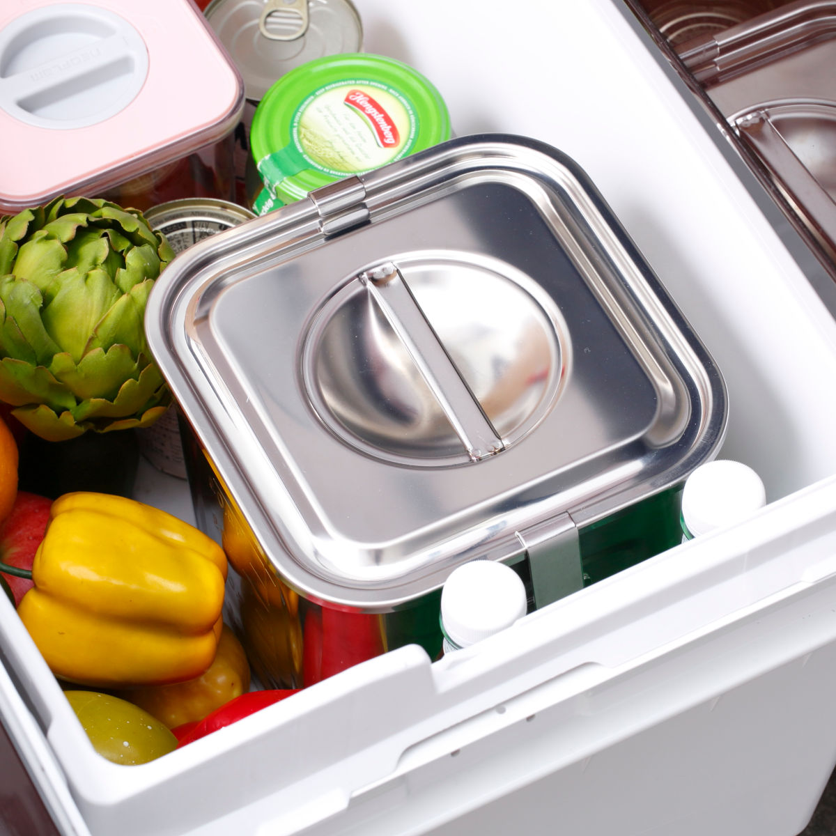 スペースを取らない角型タイプです。収まりが良く、キッチンや冷蔵庫のスペースを有効に使うことができます。