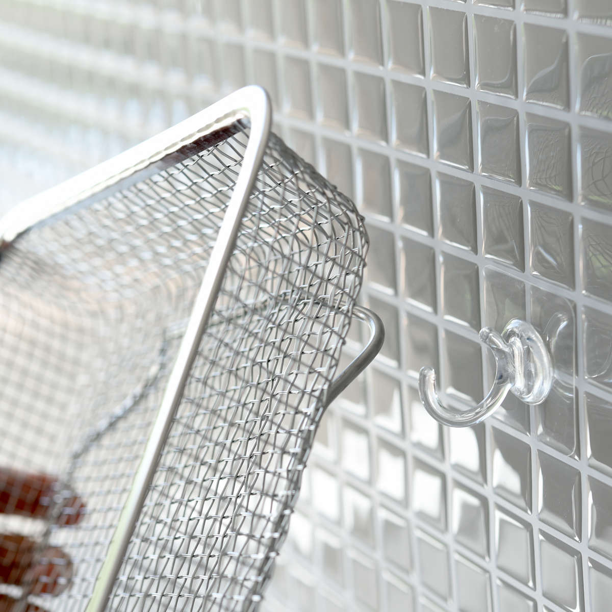脚部はお手持ちのフックなどに掛けていただくことで、壁掛け収納が可能です。未使用時も省スペースで美しく収まります。