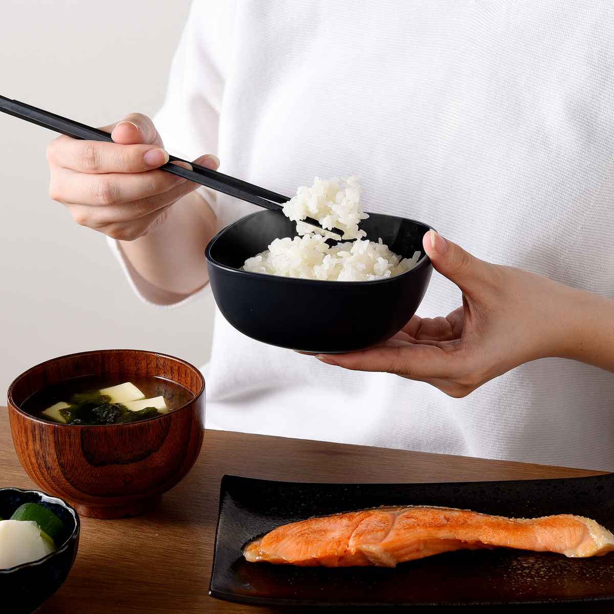 約220gの大盛りごはんもしっかり収まる大容量。適度な深さがあるので、卵かけごはんやお茶漬けもこぼれにくく、食べやすい設計です。