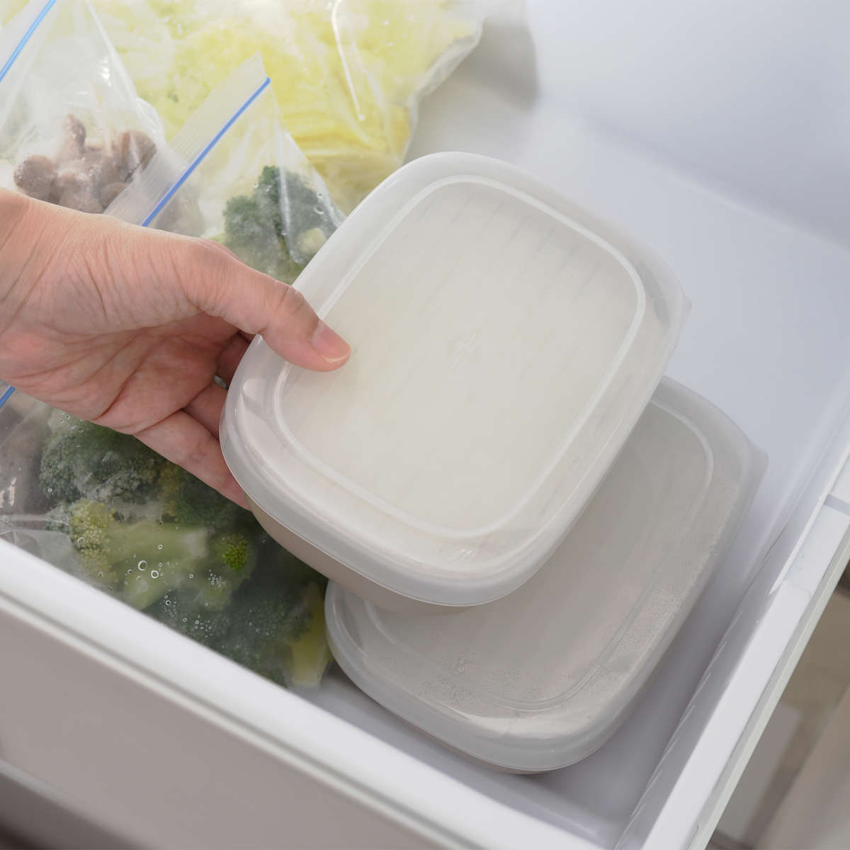 フタの凹凸で安定して重ねることができ、スタッキングして保存ができます。フタはクリアカラーで簡単に中身の確認ができます。