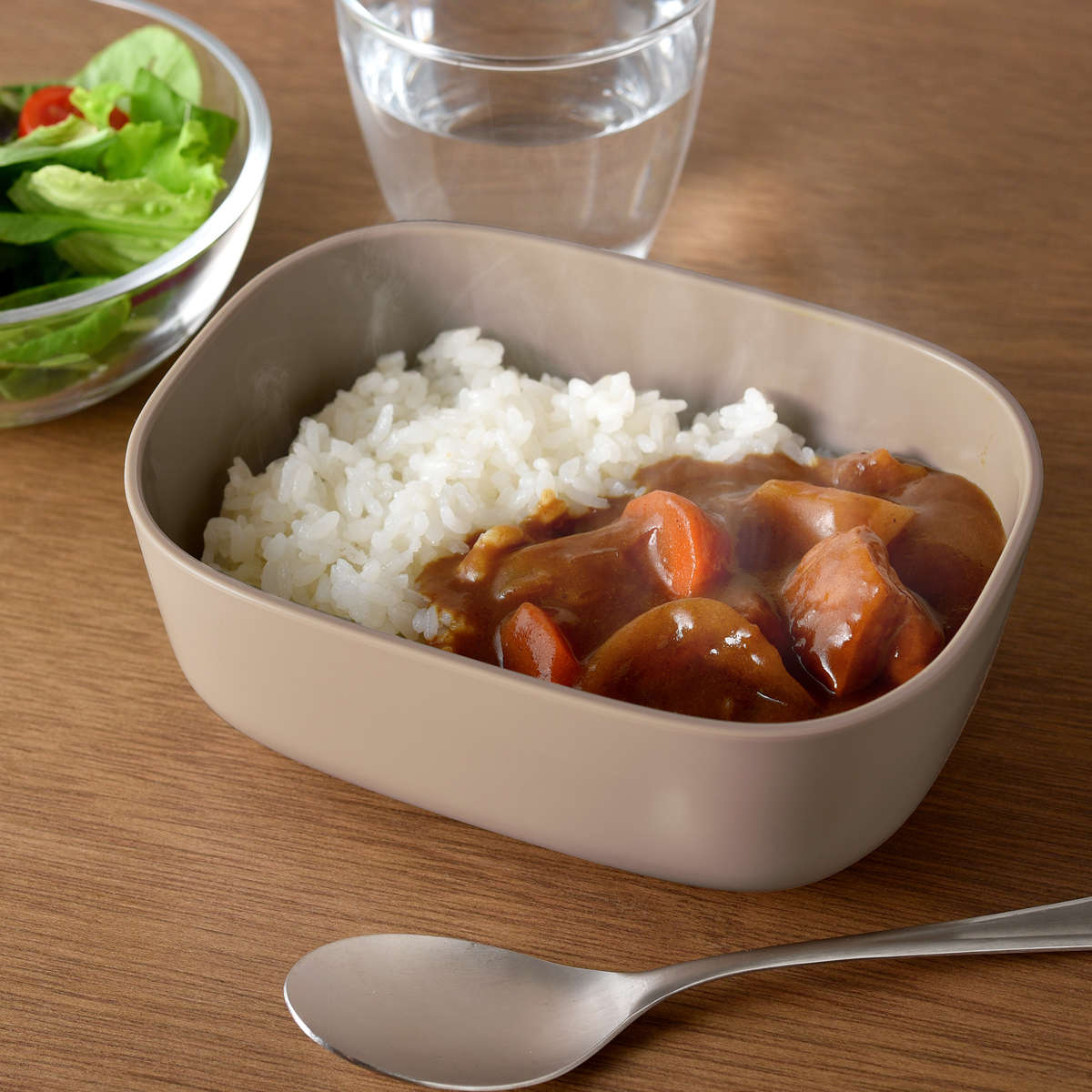 解凍後は移し替え不要で、そのまま食卓に出せる便利なデザインです。たっぷり1合分でも余裕のある深さで、丼ものや大盛りごはんにもぴったりです。洗い物が減って時短にもつながり、解凍してすぐに美味しくお召し上がりいただけます。