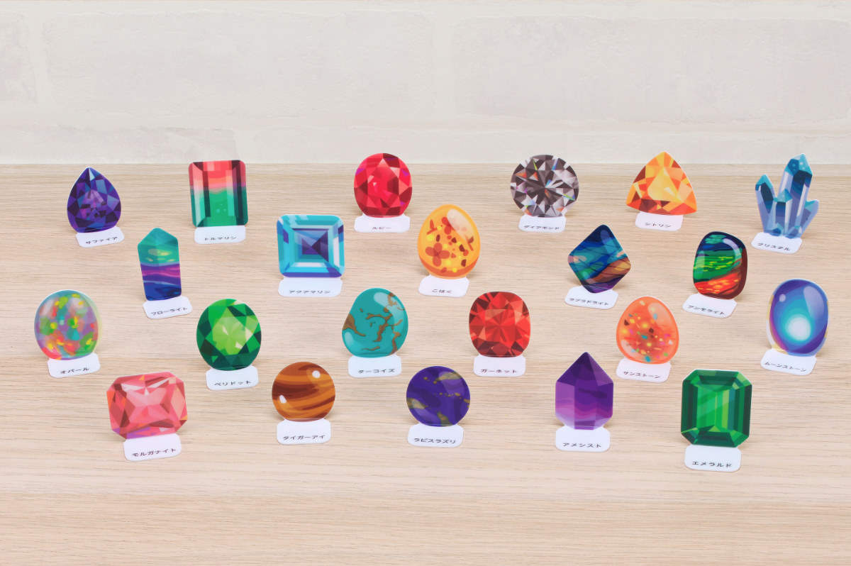 宝石コレクションシートには、宝石の特徴を図鑑のようにまとめました。親子で一緒に読みながら遊べば、自然と学びも楽しめます。