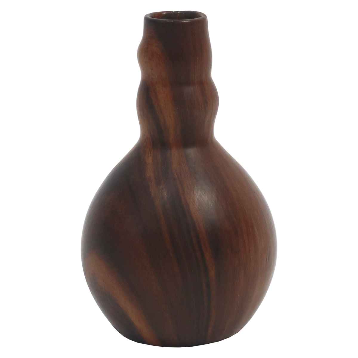 木のぬくもりを感じさせる陶器製のフラワーベースです。ユニークな形状と木目の存在感が空間を上品に引き立てます。