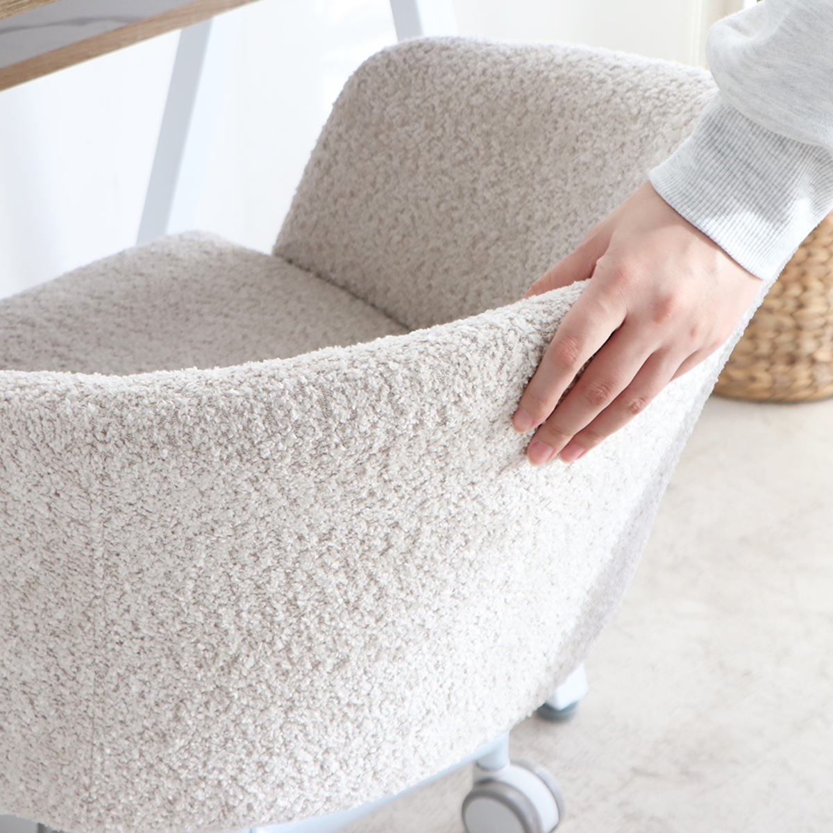 ループ状の糸で織られた生地は、表面にやさしい凹凸があり、見た目にも温かみを感じさせます。やさしい肌ざわりで、長時間の使用も快適です。