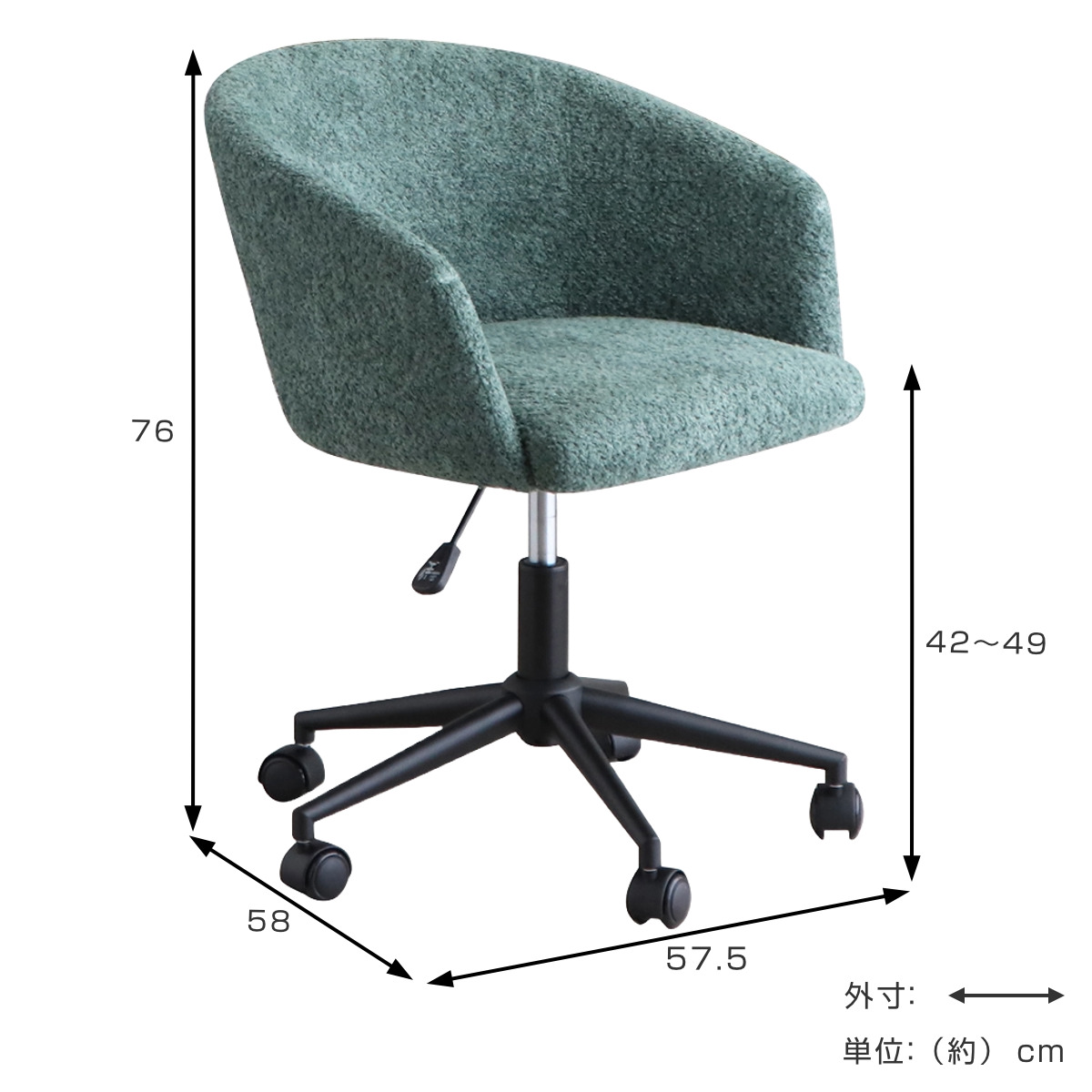 | 材質 | 張地:ポリエステル、芯材:積層合板、中身:ウレタンフォーム、脚部:スチール、ナイロンキャスター |