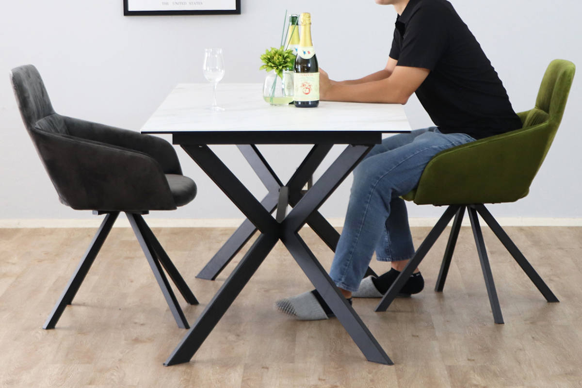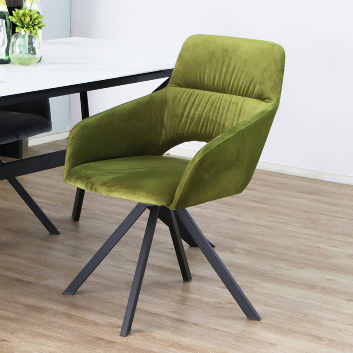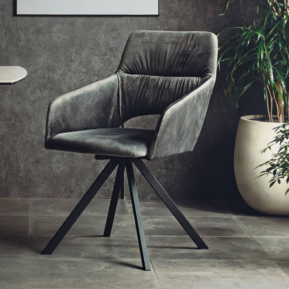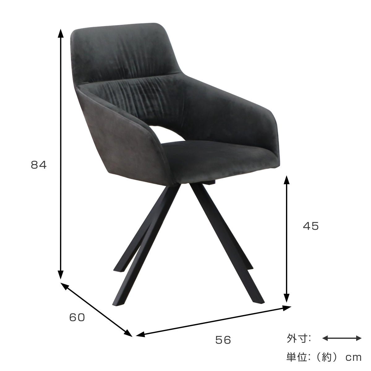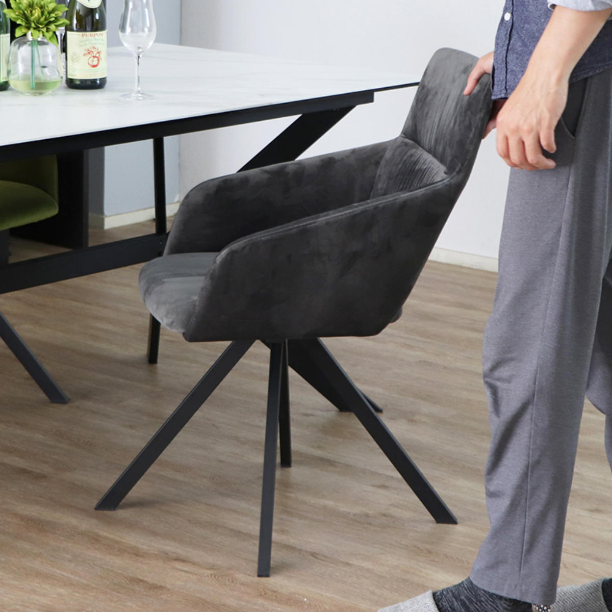 回転×肘付きで快適!モダンなベロア調ダイニングチェア