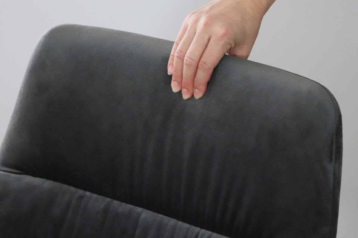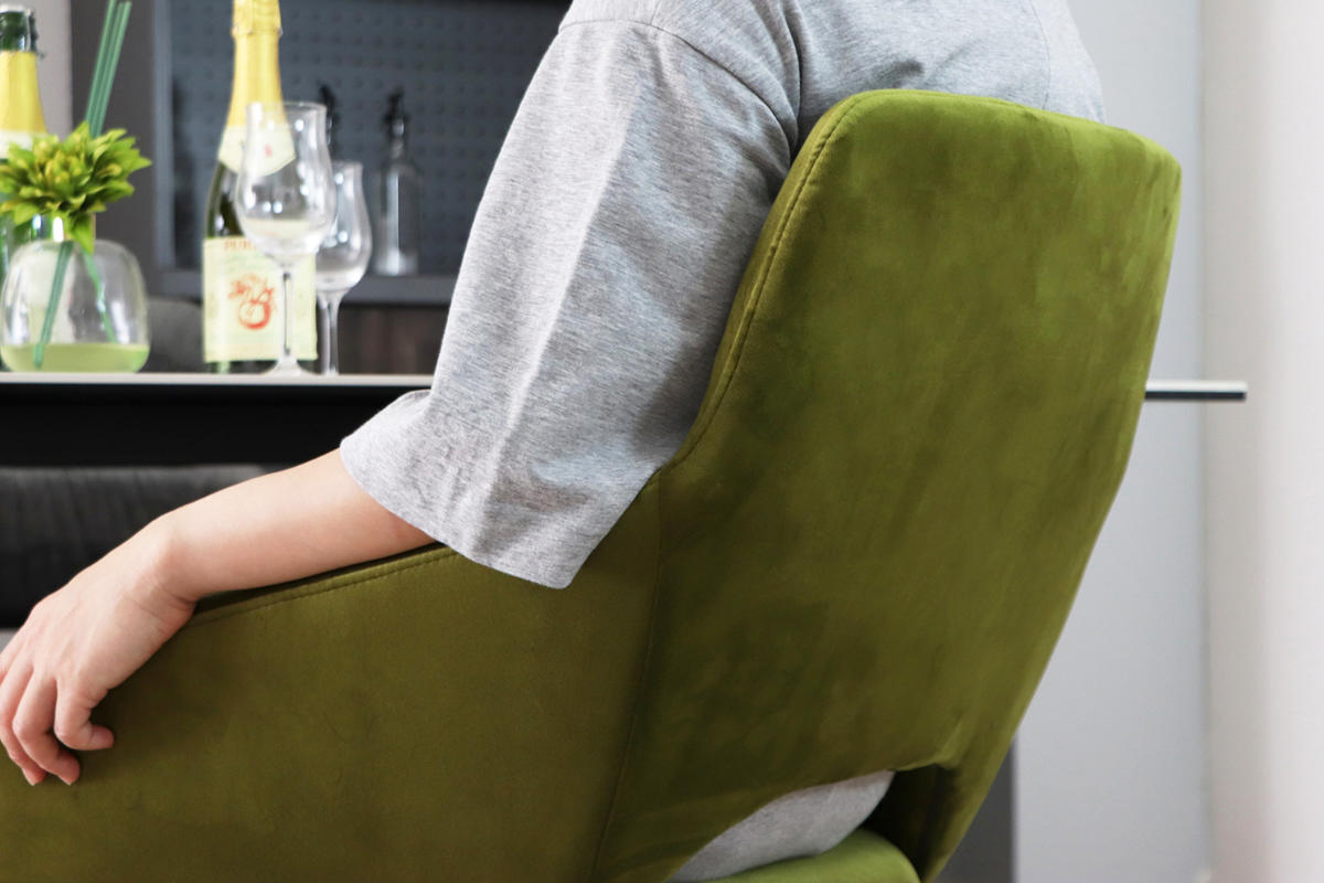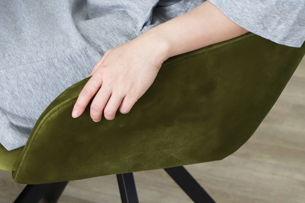 ベロア調の座面は柔らかく上品な手触り。脚はスチール製でシンプルかつスタイリッシュなデザインに仕上げ、モダン・ナチュラルどちらのインテリアにも自然に馴染みます。