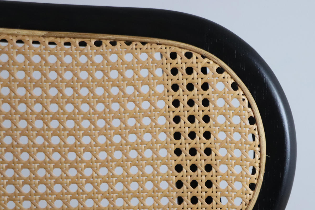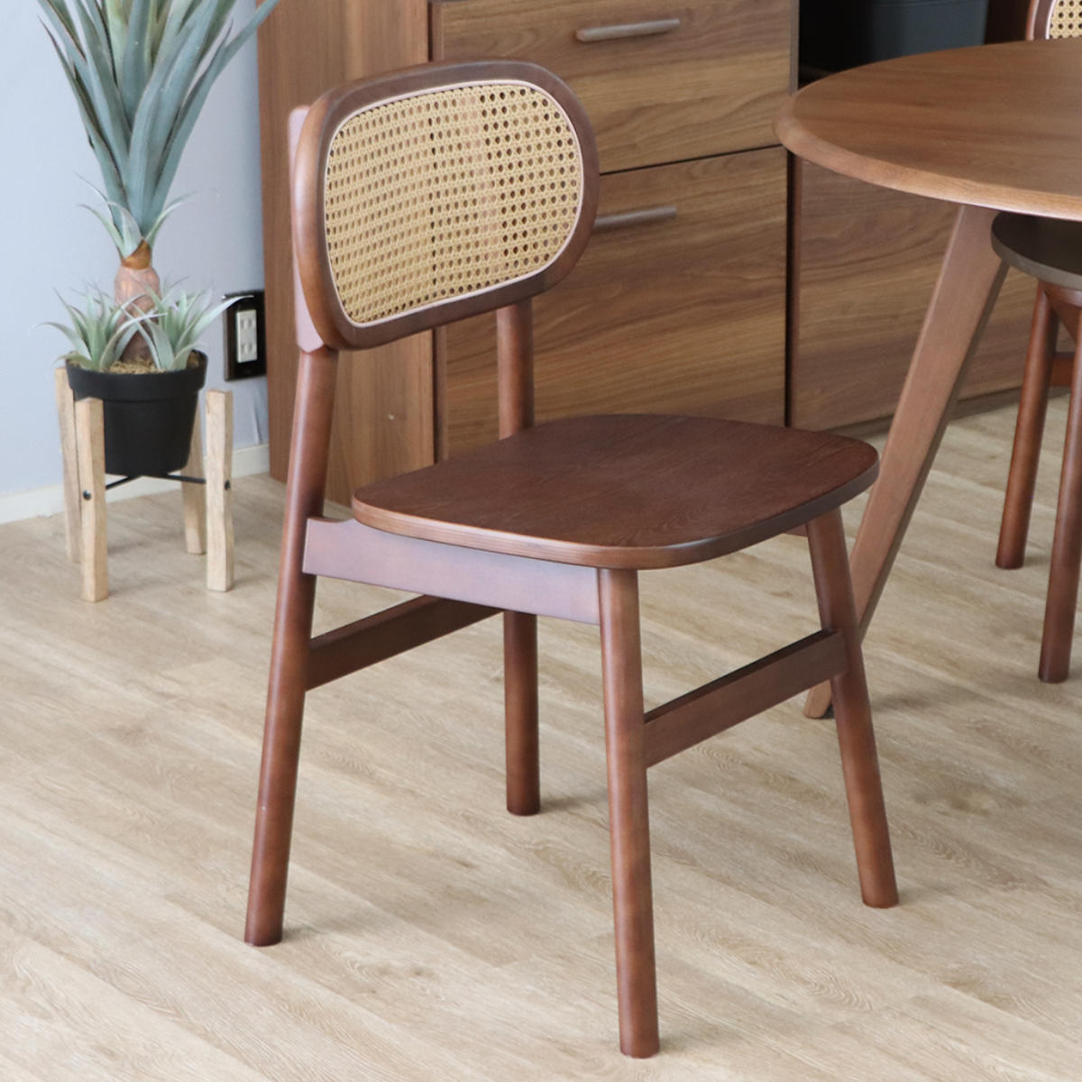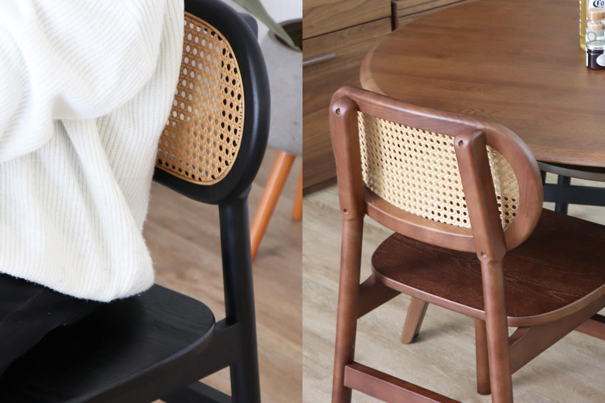手編み風のラタン調の背もたれと木製フレームが温かみを演出。北欧・カフェ風など幅広いテイストにマッチします。カラーはシックな雰囲気のブラック・ナチュラルなブラウンから、お部屋の雰囲気に合わせて選べます。