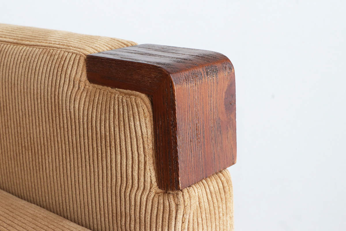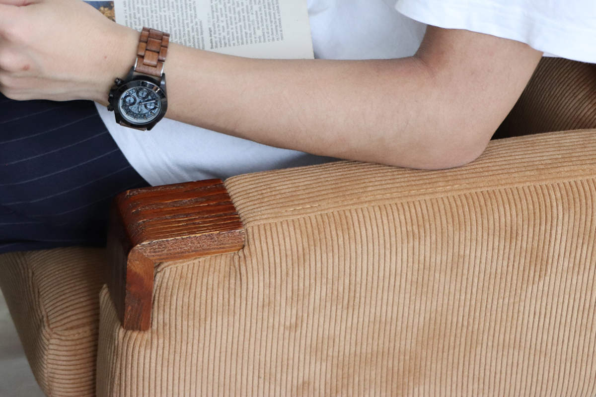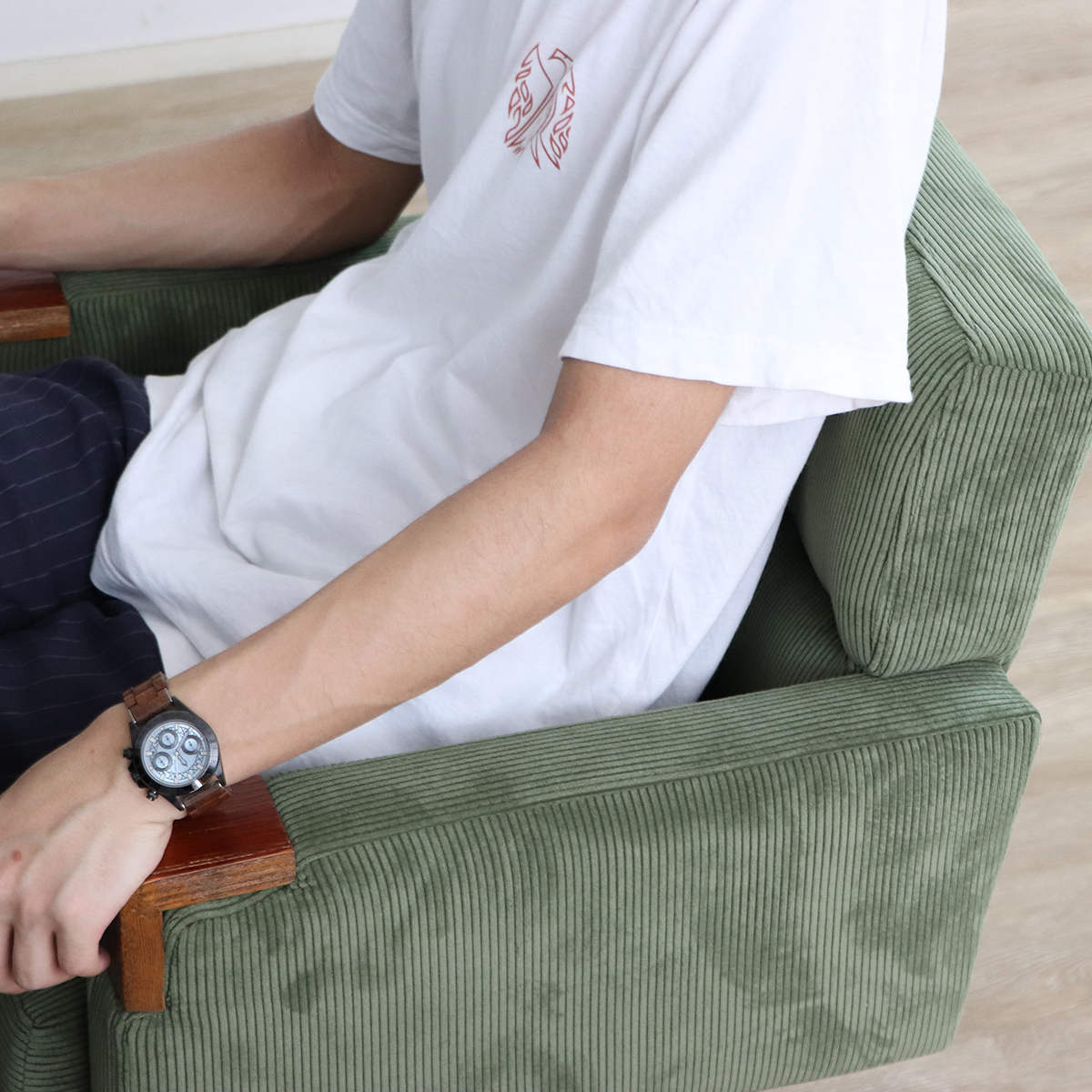 - 背もたれ・座面:コーデュロイ(ファブリック) 肘:ラバーウッド無垢-浮造り仕上
