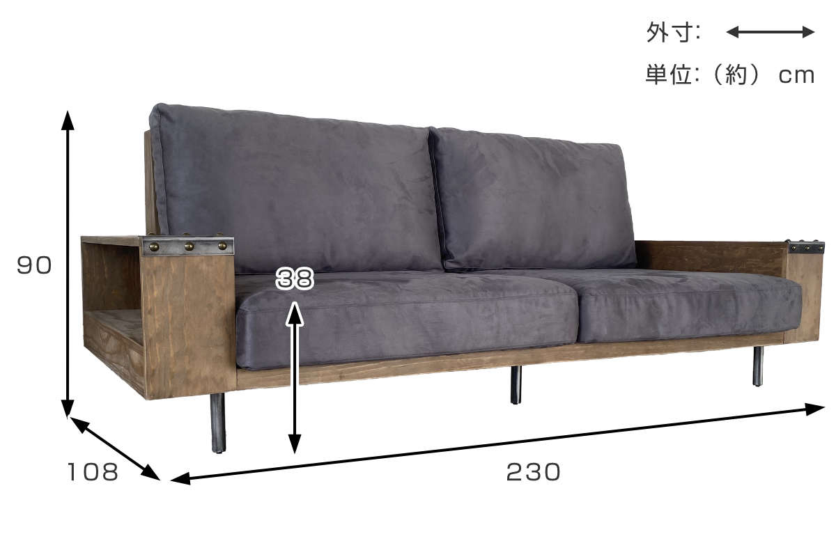 | サイズ | 約 幅230×奥行108×高さ90(cm) 座面高:約 38(cm) |