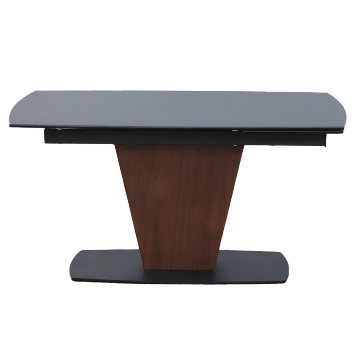 脚部は中央に配置された1本脚タイプ。天板を伸ばした際も脚が干渉しにくく、チェアを自由にレイアウトできます。足元がすっきりとし、開放感のあるダイニング空間を演出します。