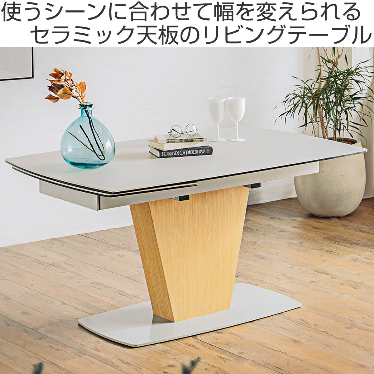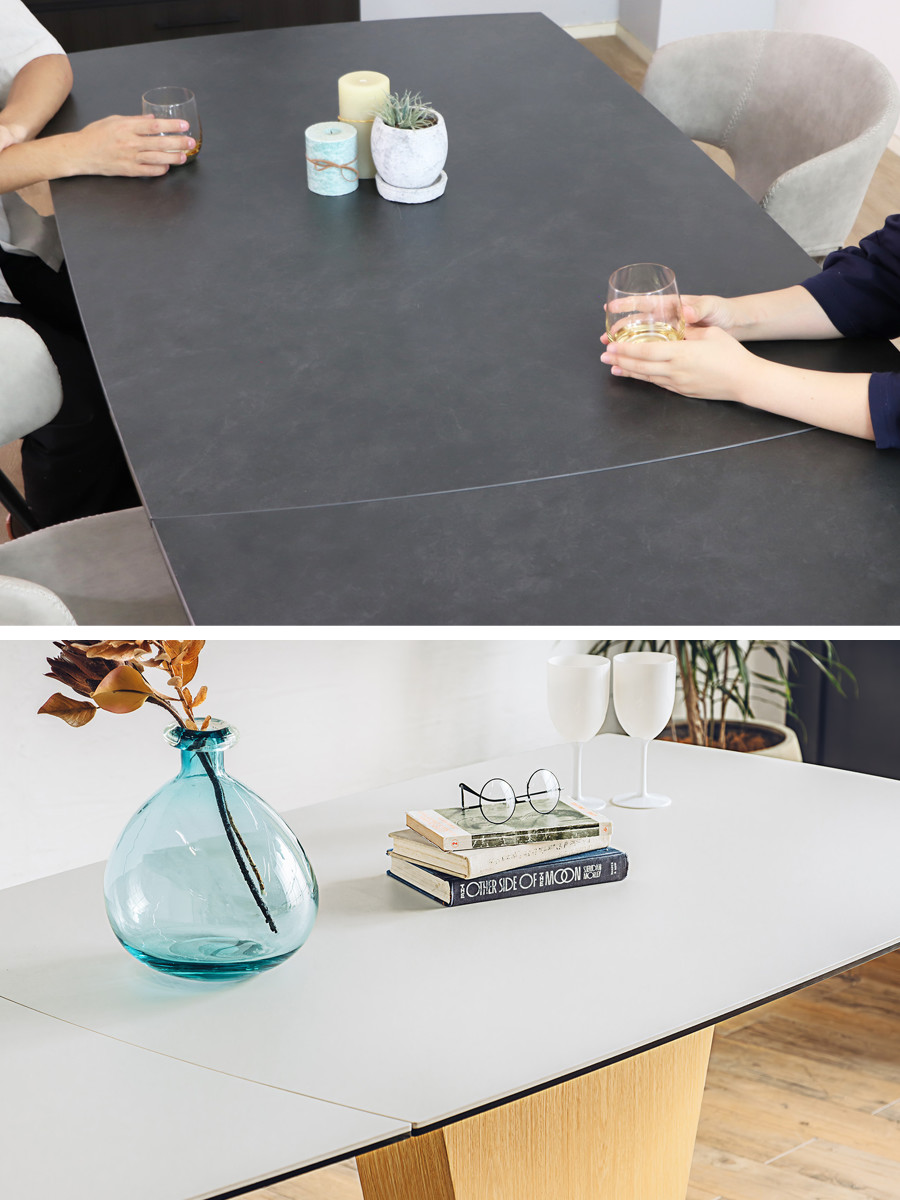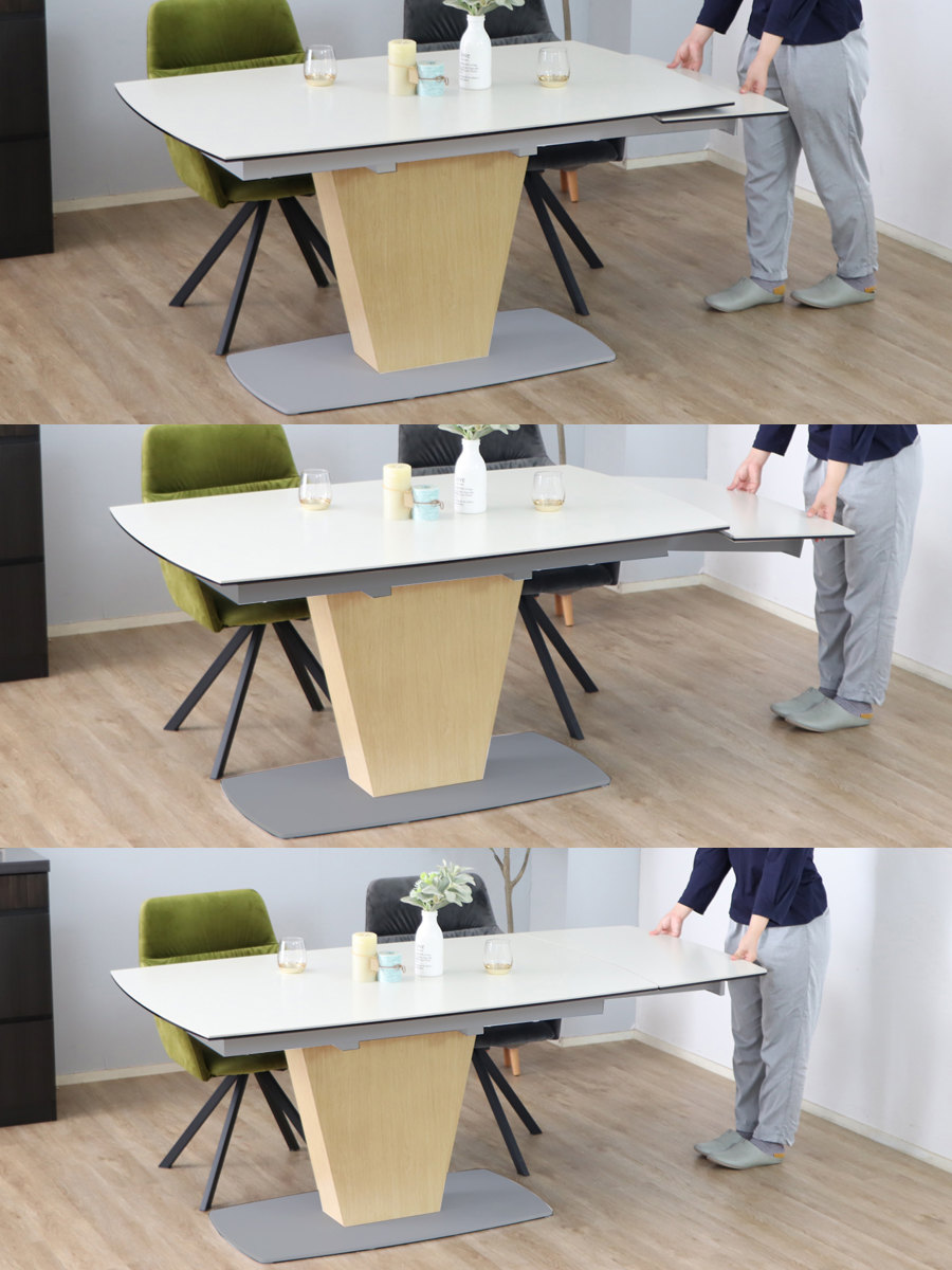 セラミック天板の伸長式ダイニングテーブル